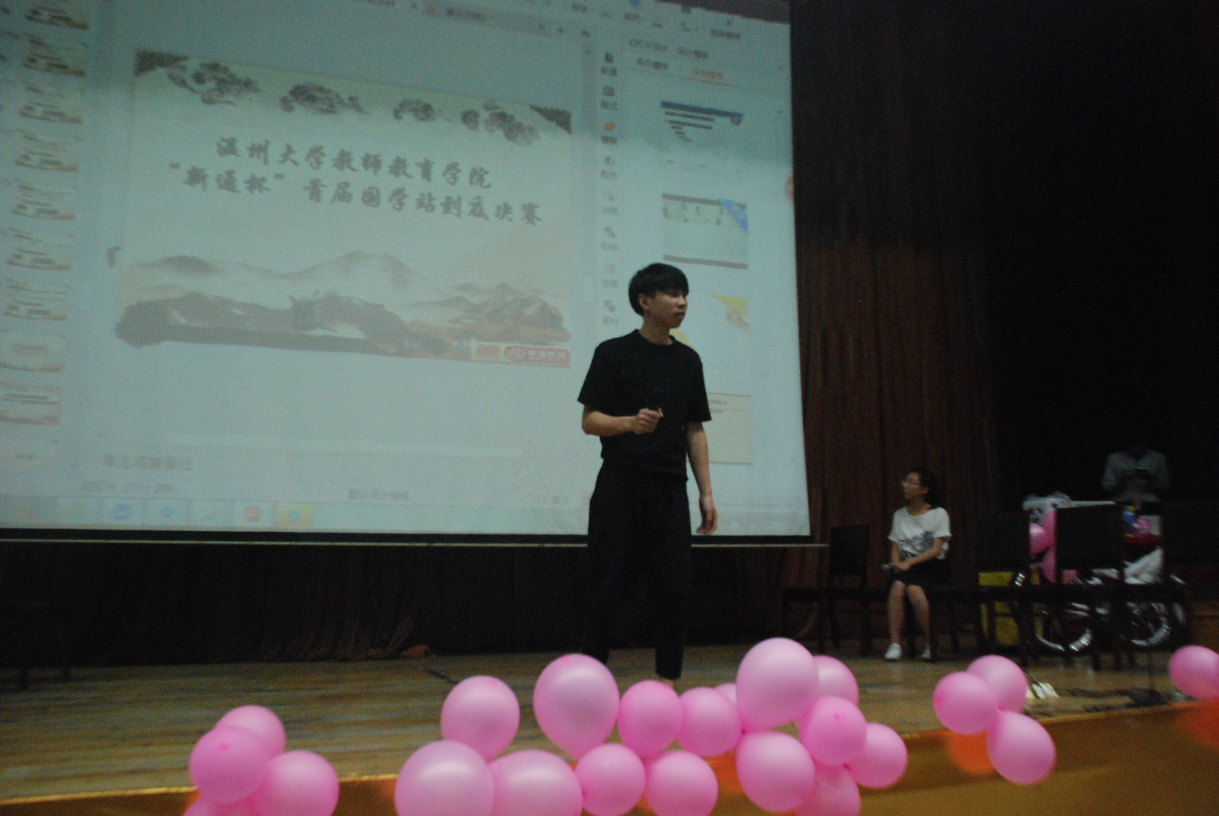 在南校9号楼报告厅举行“新通杯”首届国学站到底决赛,入选的11位选手将进行终极pk。本次比赛分为三个环节,分别是选手攻擂、观众抽奖和终极大奖。