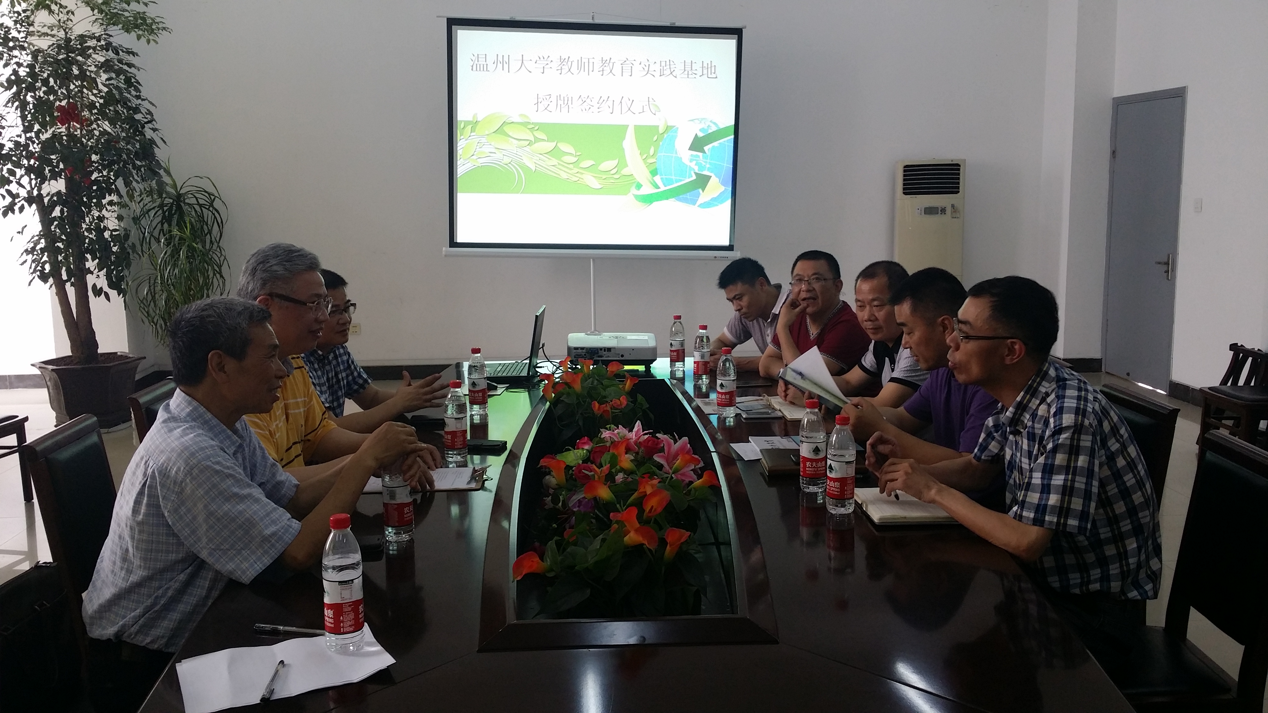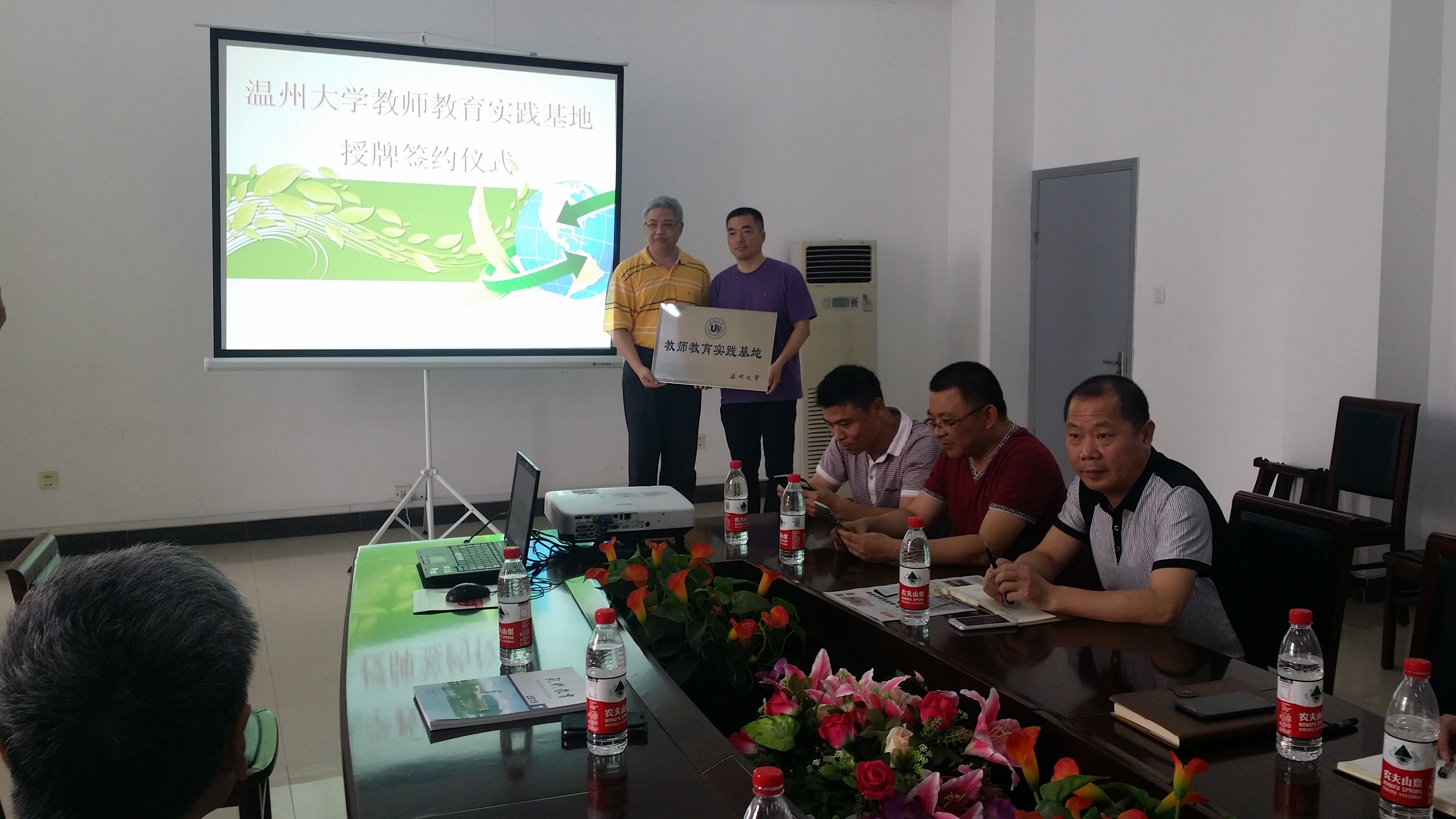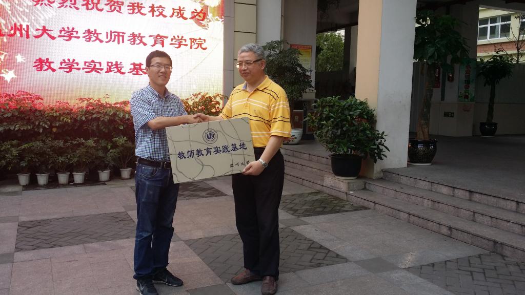 随后,潘院长一行来到瑞安市外国语财神捕鱼 ,在该校林弢校长的主持下,举行了“财神捕鱼 教师教育实践基地授牌签约仪式”。双方真诚表达了合作的意愿和方向,潘院长就协议详细解读了在哪些领域双方可以合作。仪式之后,潘院长与实习生做了会谈,了解实习情况,并下学生寝室,了解生活情况。