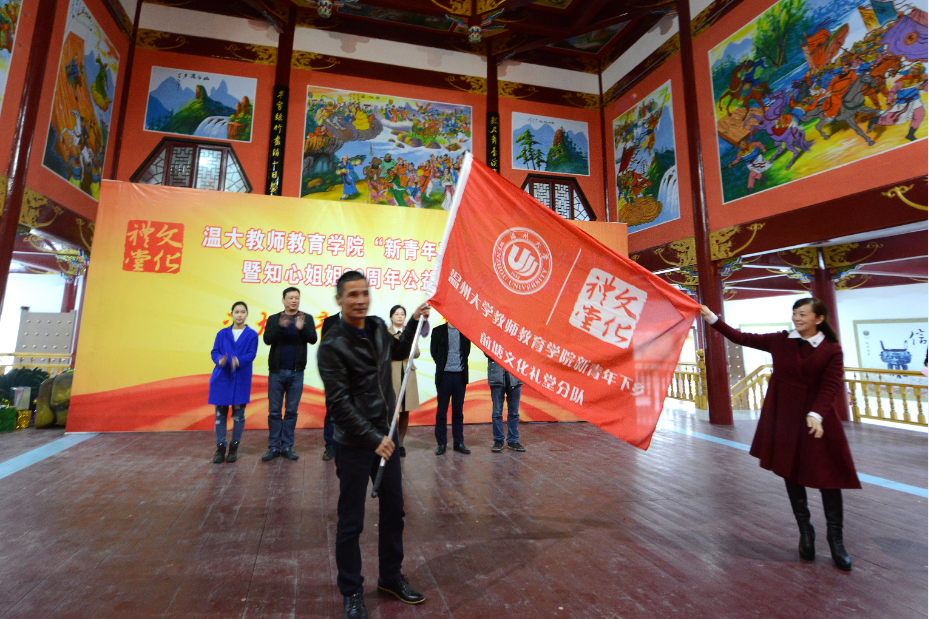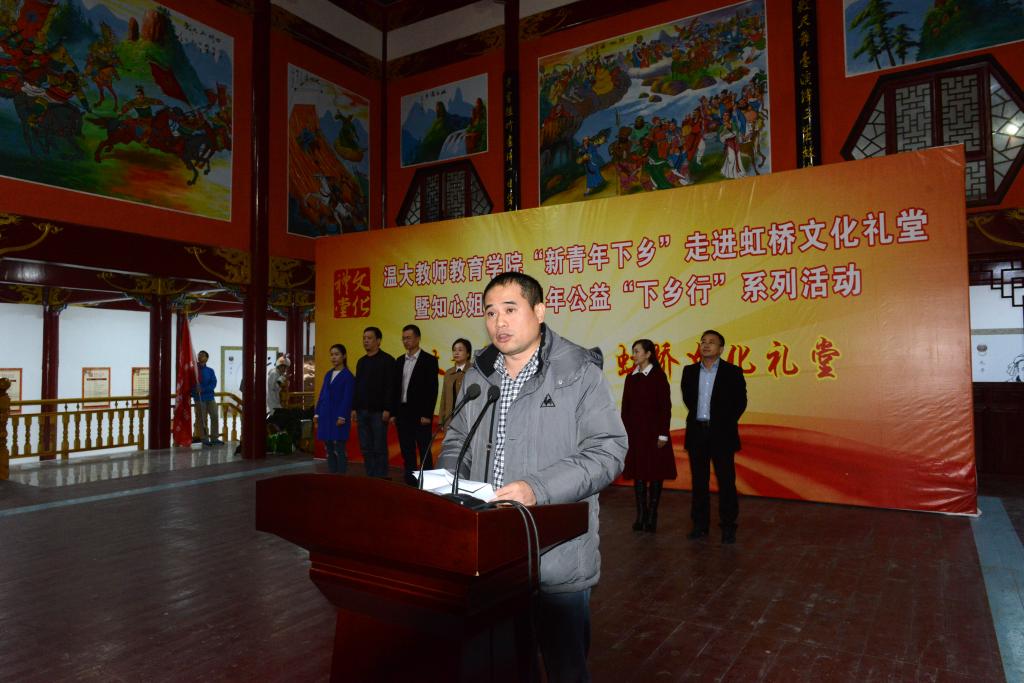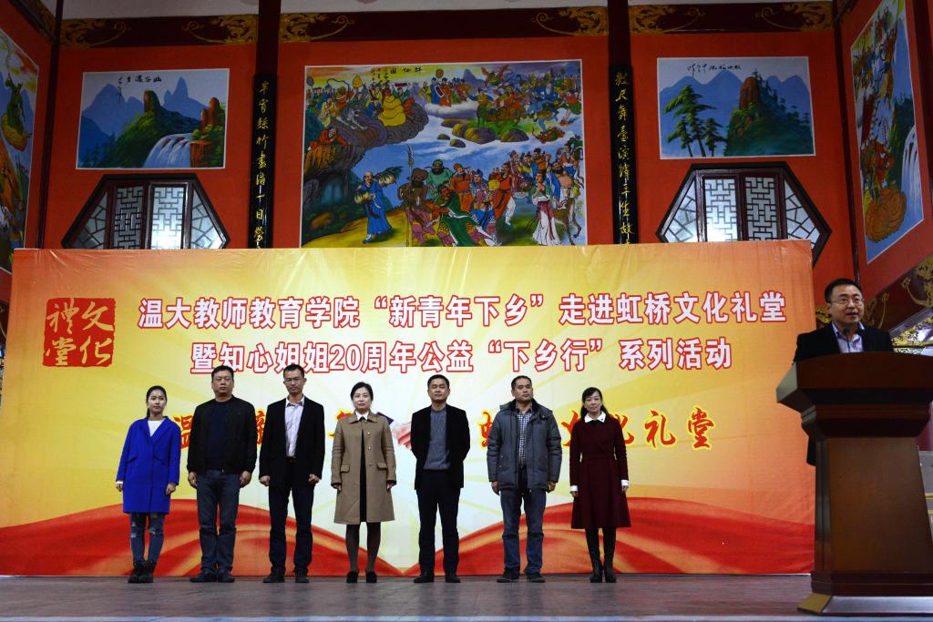 “新青年下乡”走进虹桥文化礼堂暨知心姐姐20周年公益“下乡行”系列活动启动仪式顺利举行,乐清市委宣传部副部长徐燕、虹桥镇党委副书记胡永斌、虹桥镇党委宣传委员吕海疆、温州团市委学少部部长池腾飞、乐清团市委 学少部部长 郑亦弟,温大教师财神捕鱼