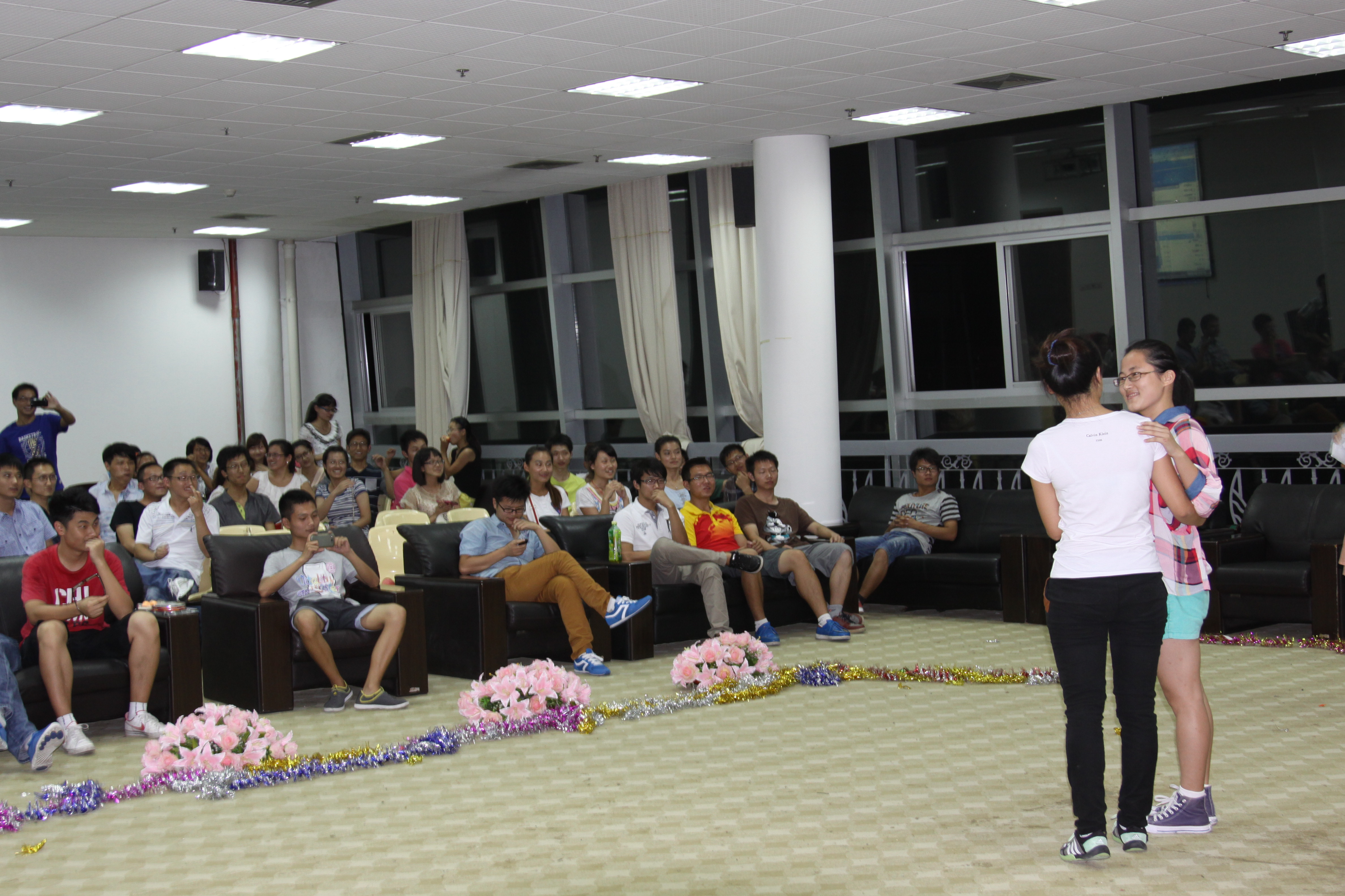 的小品《大话天仙配》推动下达到高潮,现场气氛热烈激昂,同学们在参与各种游戏的过程中彼此认识和熟悉。