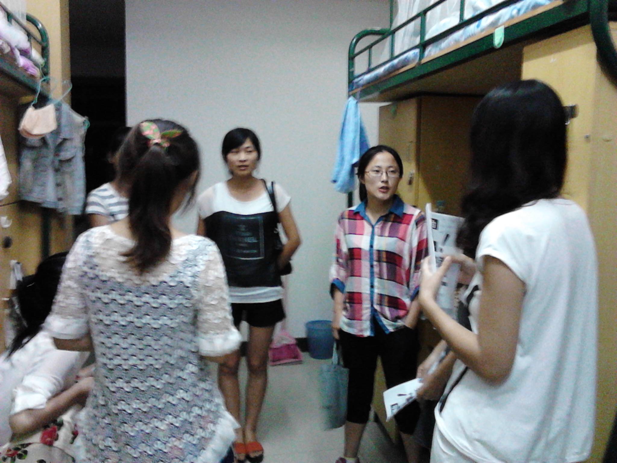 2013级研究生宿舍看望新生。本次活动的目的是为新生送去暖暖温情,使其能更快适应研究生生活,同时也为新生提供一个可以深刻了解财神捕鱼