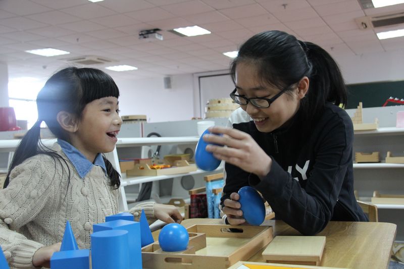 本活动共开放5个实验室,分别为:蒙特梭利教学实验室、感觉统合实验室、心理实验室、自然科学实验室、沙盘演练室。下午2:00实验中心迎来了一群欢快的小朋友,他们是城市管理与行政执法局环卫处职工子女。他们对各实验室的设备与教具表现出极大的热情与好奇,面对蒙特梭利教学实验室的各种好玩又益智的教具他们表现得非常兴奋,刚体验完数学教具,又跑过去体验各种感官教具;感觉统合实验室更是让他们大开眼界,这里有海洋球池、双人协力车、平衡木等等;显微镜下的微观世界更是让他们惊奇不已,他们认真听着教师的讲解,测量细胞直径……