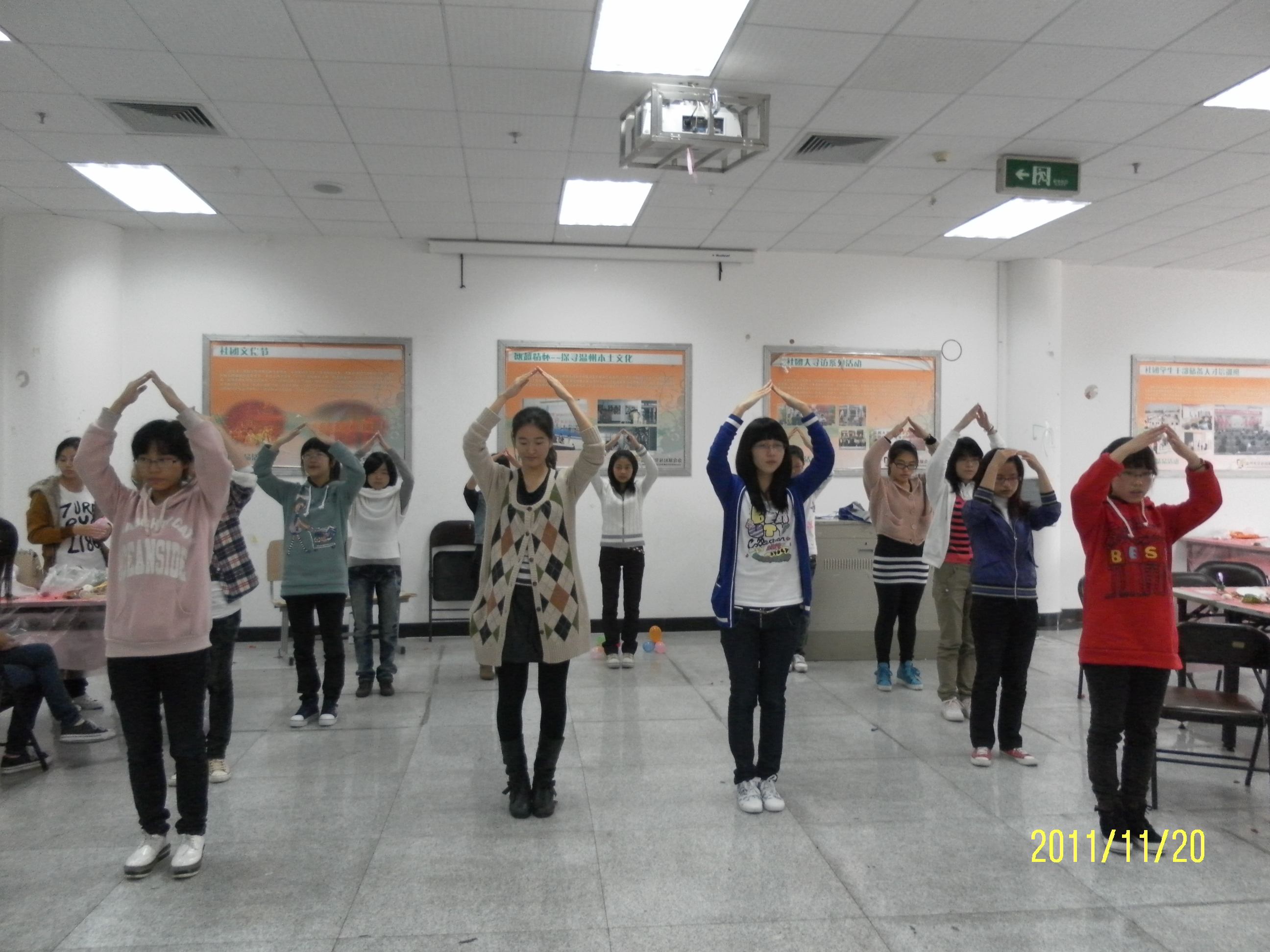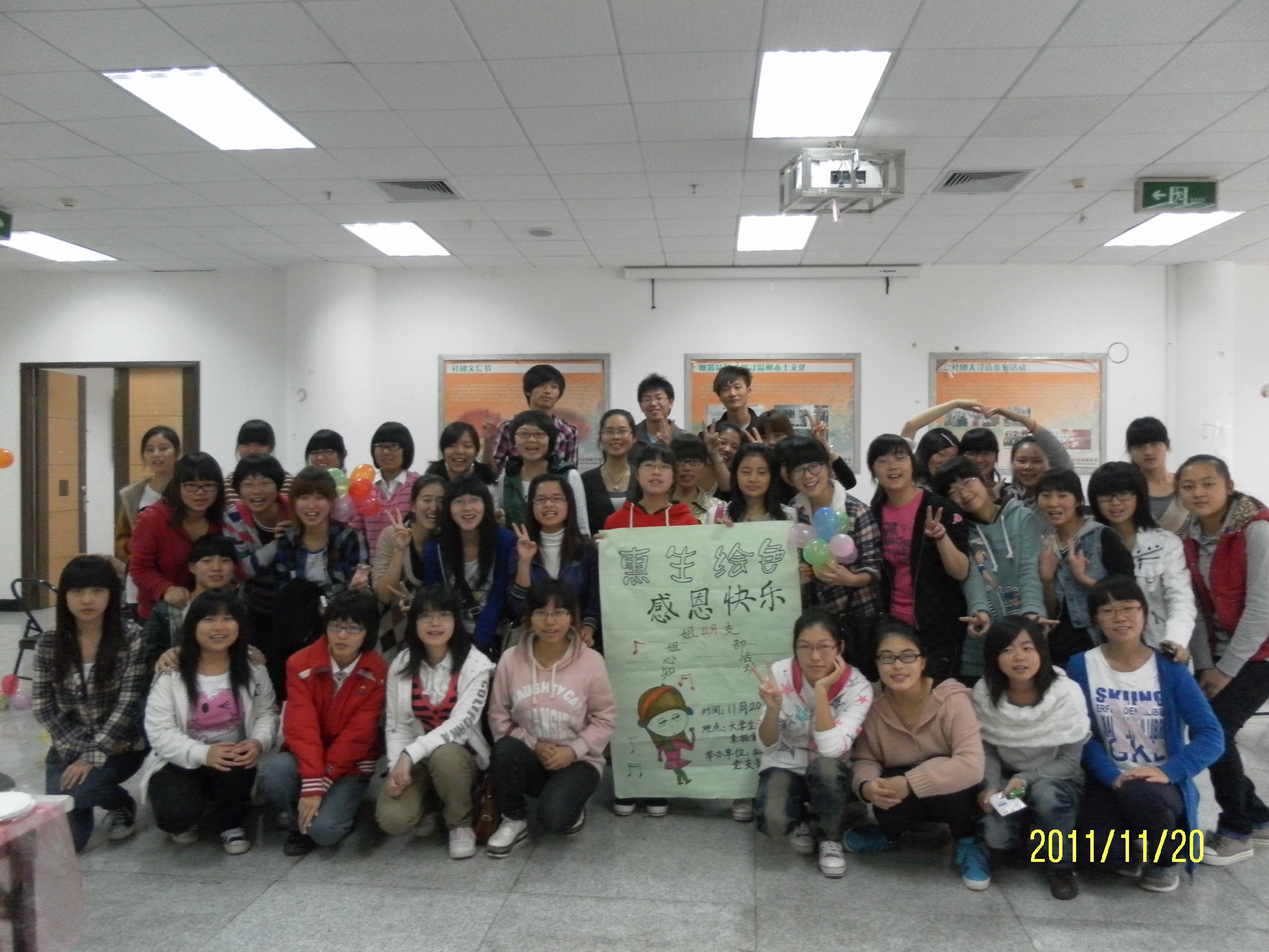 惠生绘色 感恩快乐 活动开始,首先表彰了知心姐姐十月份支部活动观看《胡锦涛:在纪念辛亥革命100周年大会上的讲话》的优秀观后感,获奖知心姐姐喜出望外。 接着,各分队纷纷表演才艺,精彩纷呈,充分体现了知心姐姐的多才多艺。留守儿童分队的朗诵展现了对孩子们的关心,温暖洋溢。民工子弟队的手语表演《感恩的心》朴实但真诚,一份份感恩之心在你我间传递。海岛队妙趣横生的情景剧《你的益达》和飞扬洒脱的街舞,引人开怀,将活动的气氛推向了高潮。节目中穿插的解手链游戏无形间拉近了大家的距离,展现了知心姐姐们团结合作,机智冷静的风采。 党支部还精心为11月生日的知心姐姐们送去生日祝福。队员们合作默契,亲自动手制作生日蛋糕,虽然手拙,却融进了知心们的情意,展现了知心作为一个大家庭的温情。最后,活动以轻松娱乐的游戏环节落下帷幕,解手链更显知心之间的心灵默契与团结,无论怎样的繁复的困难与任务,知心都能一一化解,获得圆满,犹如逐渐解开的手链。 多少次,当风雨走过我们的身旁,我们同样感恩于风雨的滋养,带来生命的成长,和生命的力量,让我们怀着感恩的心翘首期盼知心的茁壮成长,留一片希冀留一片展望。(许蒙蒙、倪丽萍)