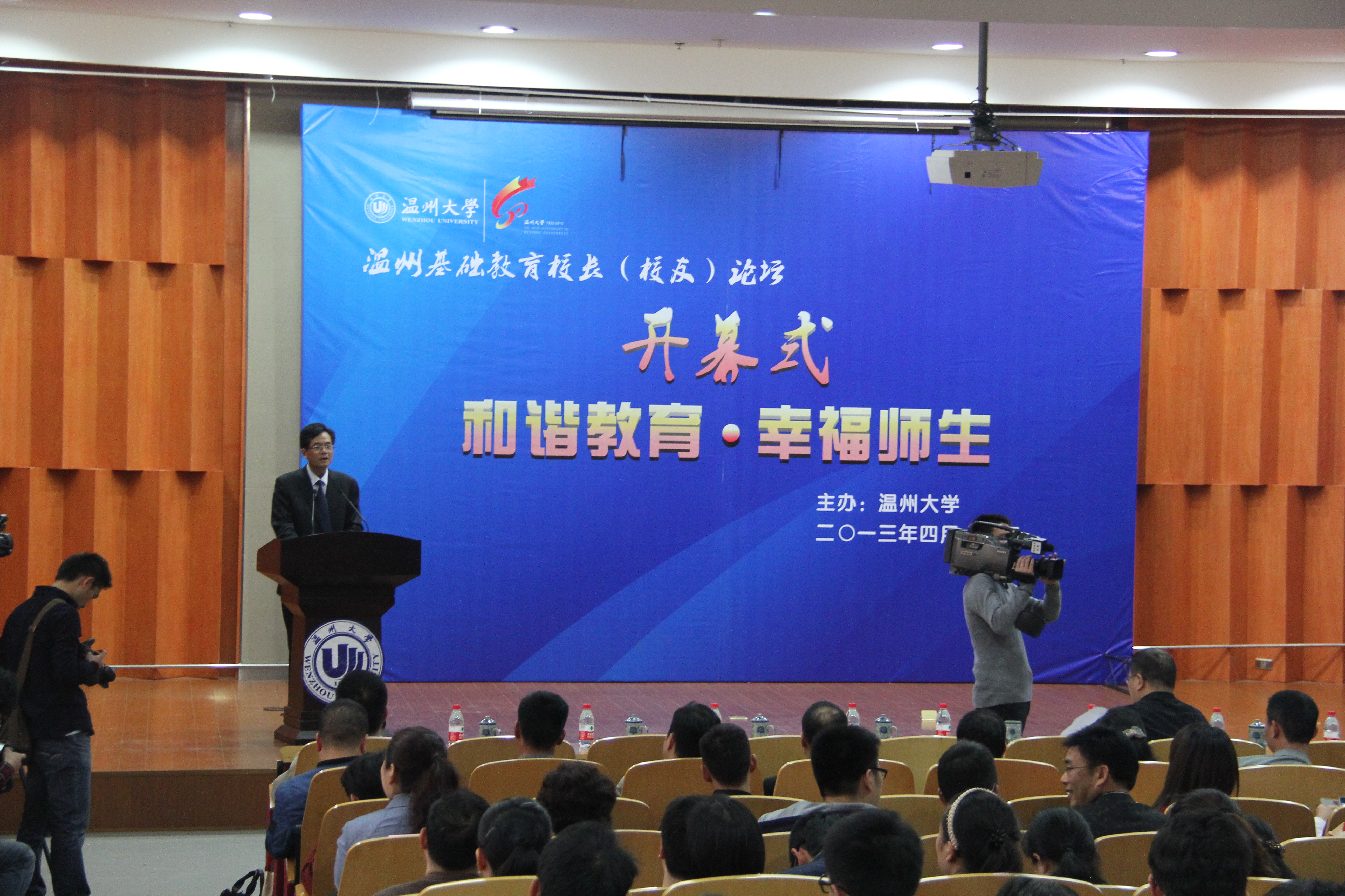 承办的校80周年校庆系列活动之温州基础教育校长(校友)论坛开幕式在南校区雁山厅隆重举行。校长蔡袁强、温州市教育局副局长张志宏、温州地区基础教育现任校友校长、园长代表80人及财神捕鱼