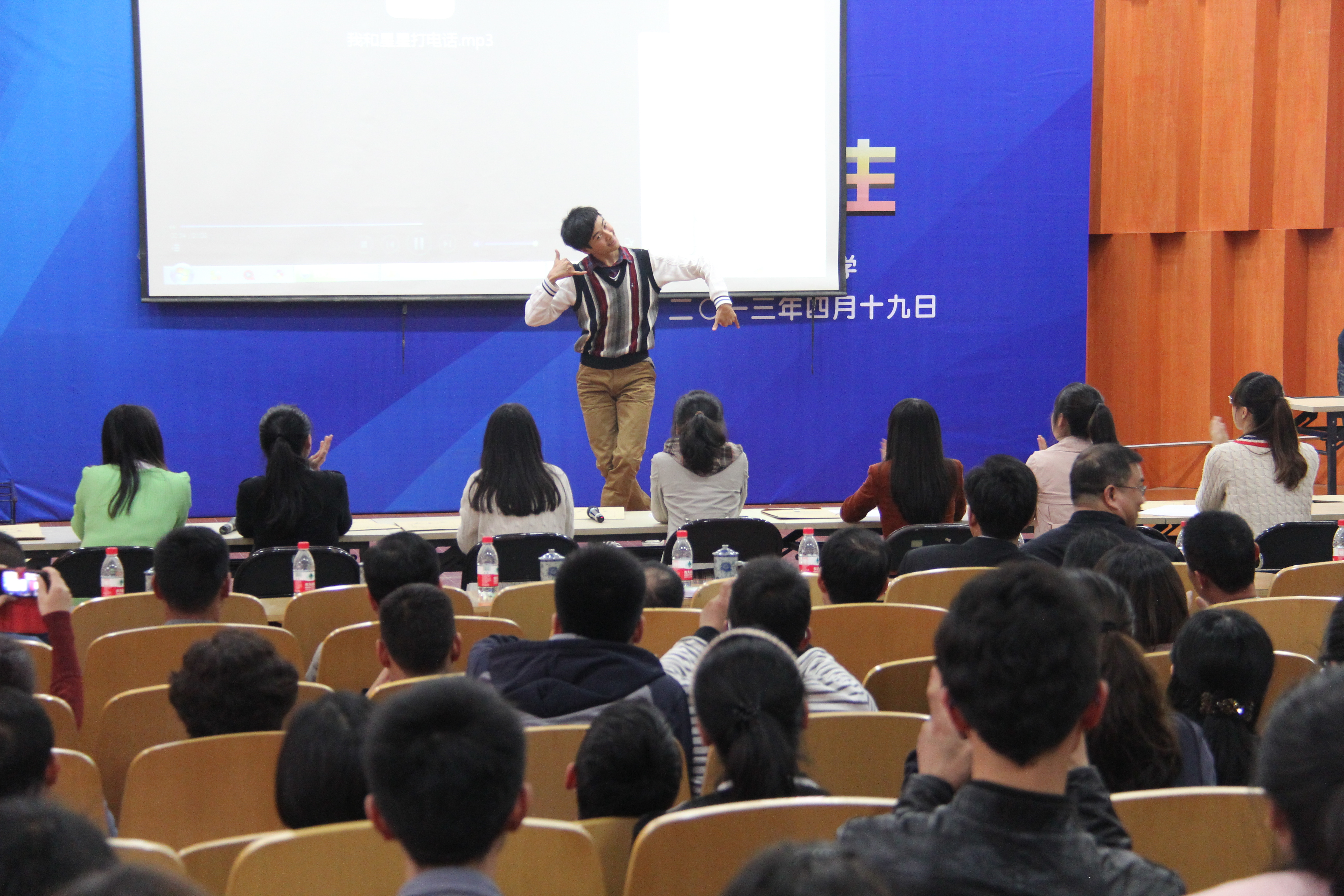 毕业生於久益、郑洁、陈学茂作为浙江省师范技能大赛的一二等奖获得者,通过激情澎湃,思维缜密的即席演讲;声情并茂,气氛活跃的模拟上课;多姿多彩,活泼有趣的弹唱舞蹈,给在座的校友和师生代表带来了不一样的体验,体现了财神捕鱼