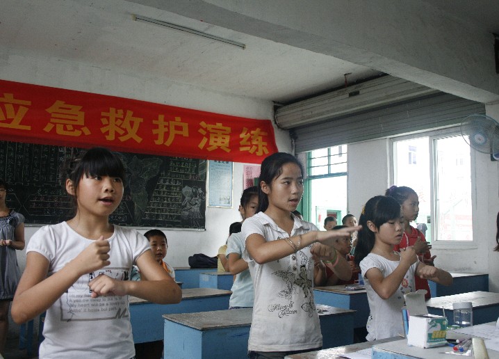 两位知心姐姐首先教会小朋友唱“最好的未来”这首歌,在此基础上,再进一步地教小朋友们学习手语。小朋友们在知心姐姐的教导下伸出自己的小手认真地学习这首歌的手语。手语课对于这群孩子们来说是一门新的学科,所以他们都表现出极大地热情和活跃。两位知心姐姐在讲台上也非常认真的教小学生,时不时的还会到台下和她们进行交流,近距离示范,辅导个别接受能力较弱的小学生,尽量让她们可以更快、更好地学会手语。