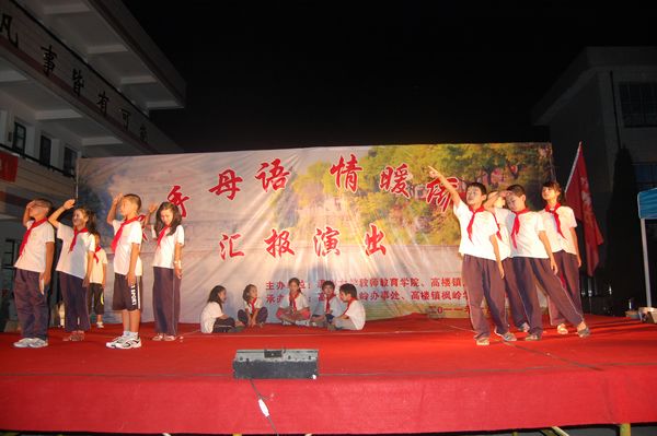 教学楼前,工作人员们搭建舞台、调配音乐与话筒之后,开始彩排工作。低年级与提高班教室里各位演出人员有秩序地集中,队员们给他们进行最后的精神鼓励工作;中年级教室里,负责化妆的队员们按照节目顺序给学生们进行化妆与着装;后勤队员们不断忙碌,布置着观众席与嘉宾席。所有的队员在忙碌的同时不忘互提意见,进一步发现问题,以使得今晚的演出能够更加顺利。时间在忙碌时总是过得很快,不知不觉就到了18:30,各位领导入座,演出正式开始。在主持人说辞完毕,各位代表发言完毕之后,也就进入了今天的高潮。一个一个精彩的节目缤纷呈现,观众们掌声不断,尖叫声不断,孩子们个个变身为美丽的天使,脸上挂着真正属于他们的天真笑容。舞台上,歌唱、舞蹈、小品、相声、合唱、朗诵……各种节目应有尽有,异彩纷呈,给这个美丽的枫岭更是注入了一股新的活力。在互动环节,孩子们与家长心有灵犀,赢走一个又一个的奖品,感受亲情的可贵与魅力。