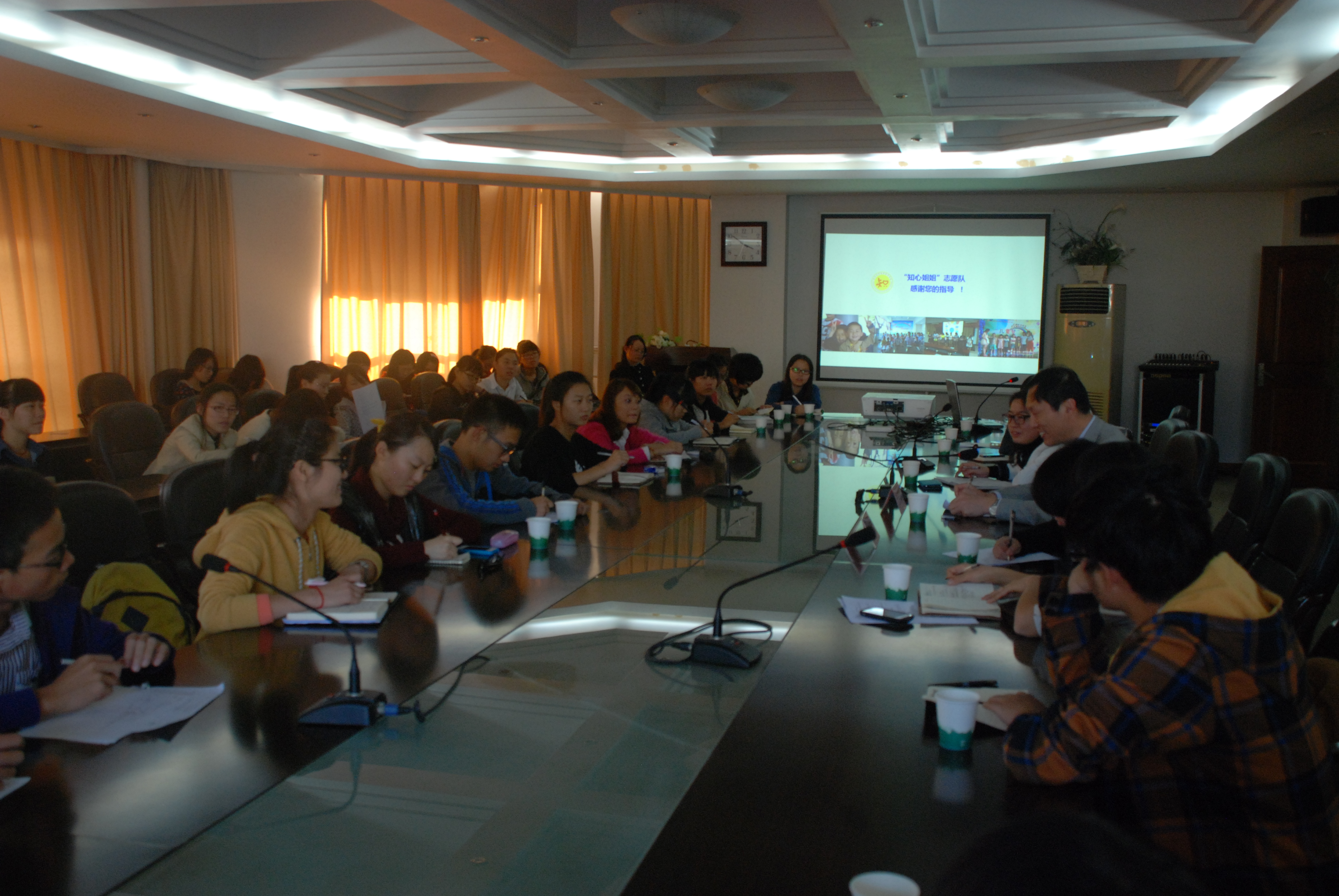 2013年11月22日下午3点半,“知心姐姐”志愿队工作理念凝练座谈会北校行政楼227举行。牟德刚书记与我们的知心姐姐哥哥们进行了热切交流。