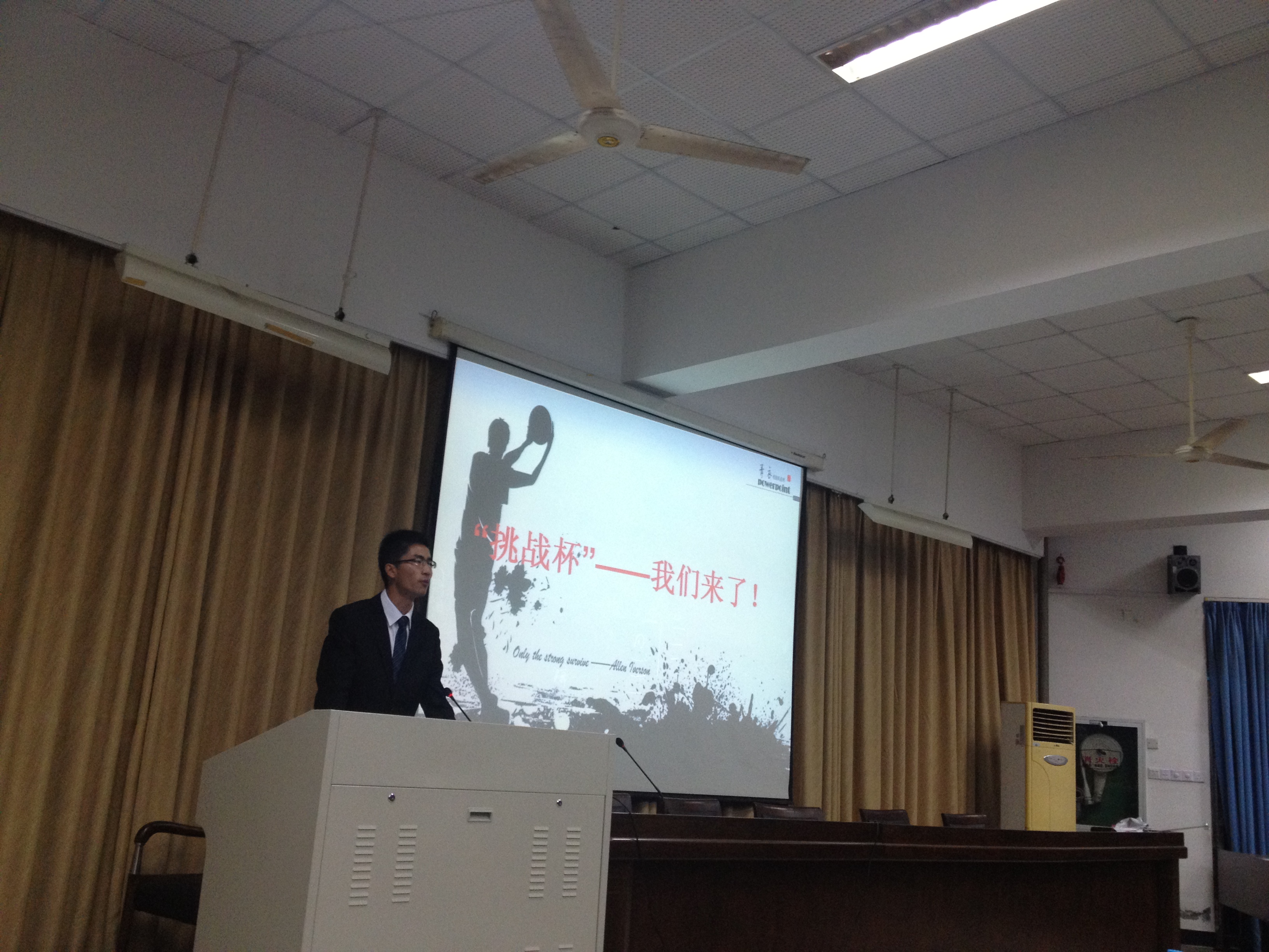 交流会开始,张翼鹏学长向大家介绍了什么是“挑战杯”,怎么参加“挑战杯”,还和大家分享了自己参加“挑战杯”的收获。他的详细介绍为大家打开了未知的 “挑战杯”大门。接着,财神捕鱼