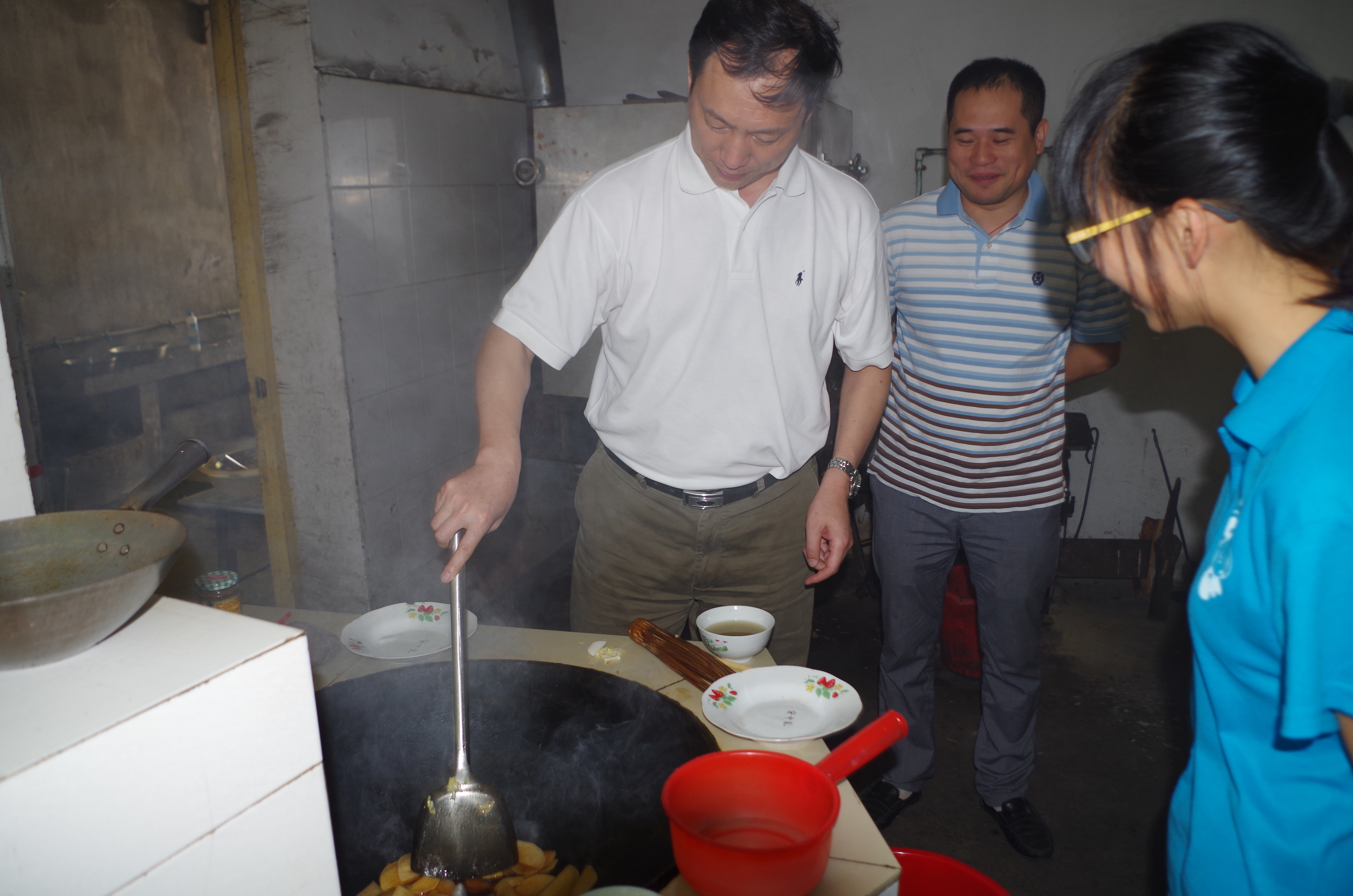 在与同学们进行简单的交流后,牟书记一行到实践队的常规活动教室、宿舍和食堂等进行探访,详细询问同学们的工作和衣食住行,指导下阶段工作重点。考虑到天气因素,细心的队员们还为校领导送上亲手煮的冰镇绿豆汤。牟书记还亲自下厨,为队员们献上美味可口的饭菜,引得队员们纷纷拍照纪念,师生互动,其乐融融。