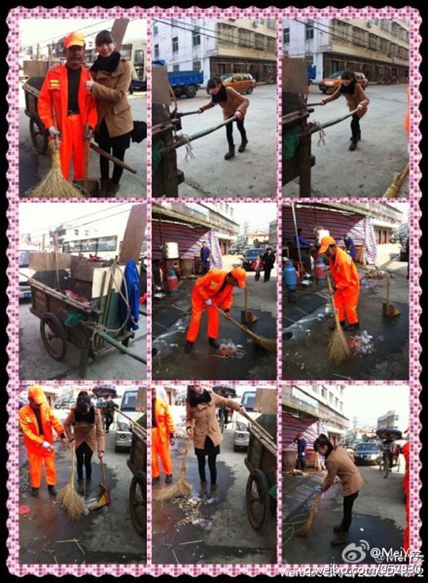 图1. 学生党员郑凤妹体验清洁工角色