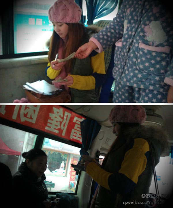 图5. 研究生党员吴琼琼体验公交车售票员角色