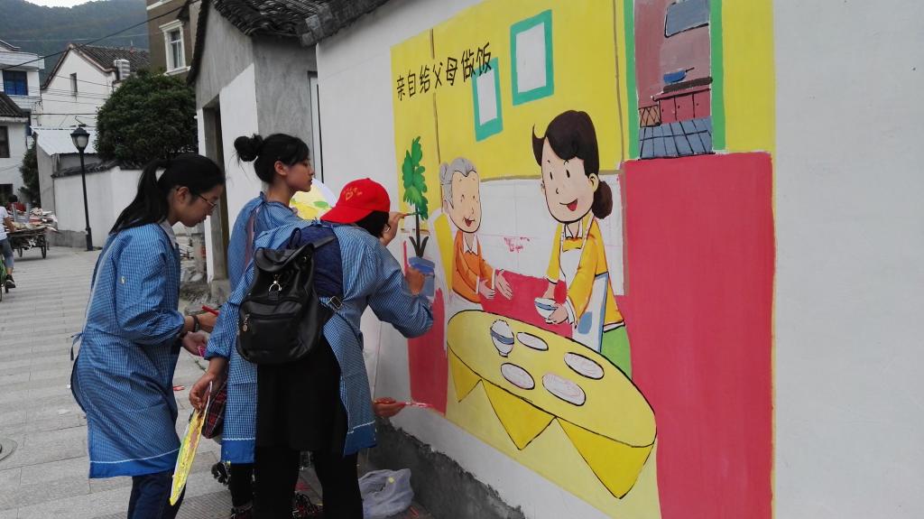 5月4日下午,由财神捕鱼 教师财神捕鱼 和美术与设计财神捕鱼 共同发起“弘扬传统文化 共建美丽乡村”活动再次吹响五四青春的号角。由教师财神捕鱼 美术工作坊指导老师陈铿和学生科严晓秋老师带队,30余位学生志愿者,前往乐清虹桥镇大乌石村开展公益墙绘活动。