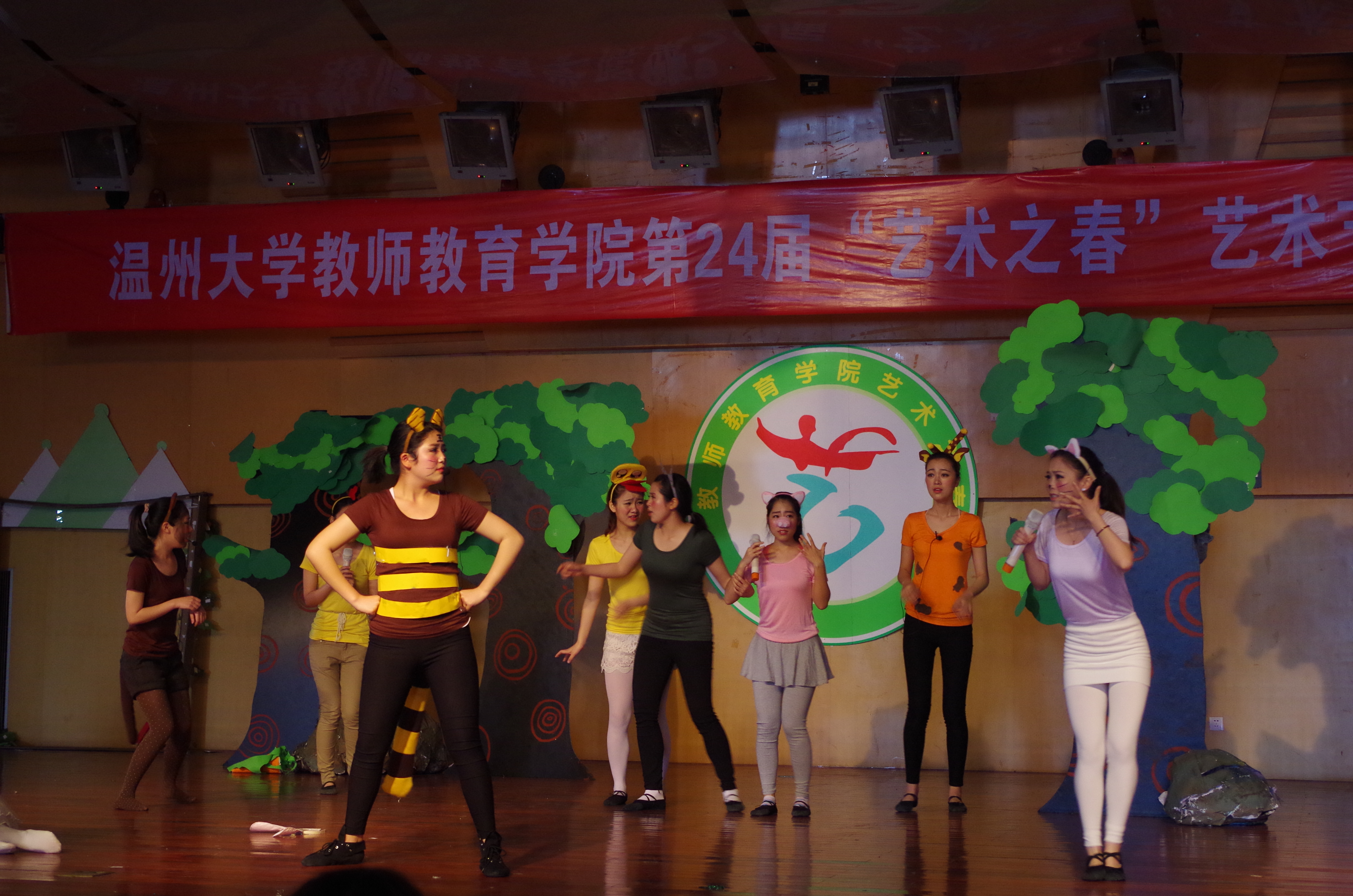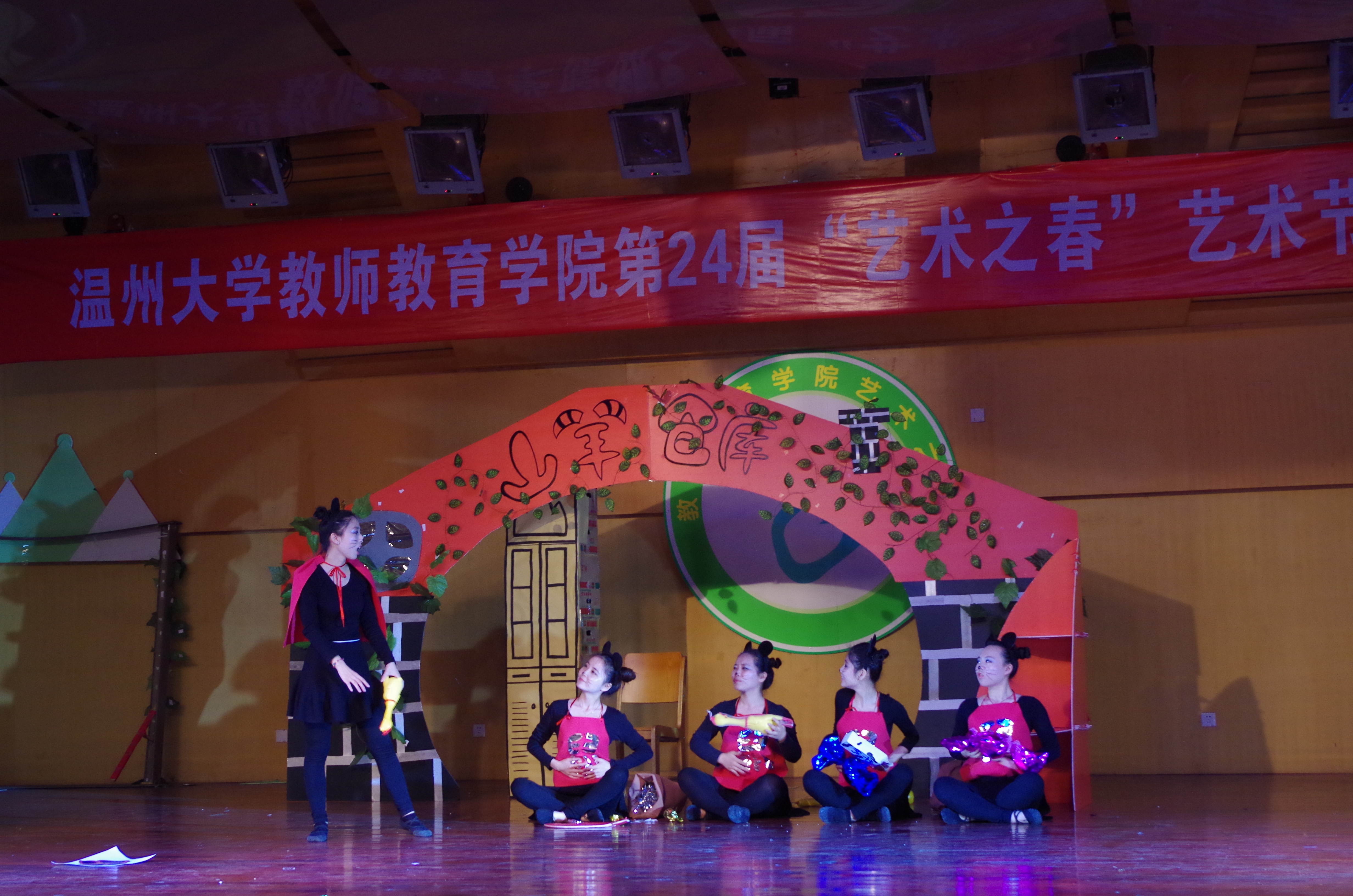 首先出场的节目是13大专2班带来的童话剧《老虎拔牙》,演员们扮演了大森林里的小动物们,栩栩如生。最后在小动物们的齐心协力下,让凶猛的老虎掉了牙齿。从这个儿童剧中,同样也告诉小朋友们要勤刷牙才可以防止蛀牙。接下来有13大专3班带来的《小红帽》则改编了耳熟能详的童话故事《小红帽》,加入了时尚元素和幽默因子,引发了在场大朋友和小朋友们的阵阵欢笑。接下来的四个节目都是11学前本为大家呈现的,分别是《谁动了我的仓库》、《九色鹿》、《不摘花》和《葫芦娃》,在场的小朋友们最喜欢的是《葫芦娃》,还有的小朋友唱起了这首儿歌呢!