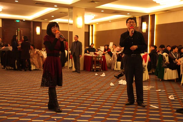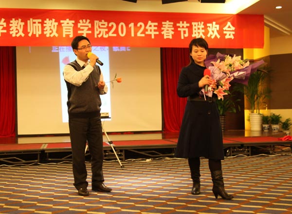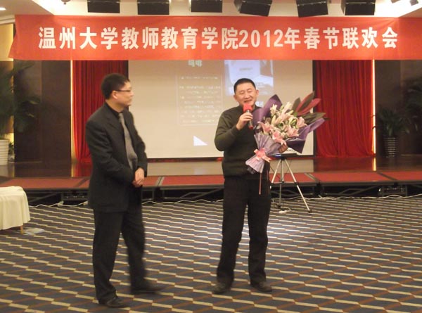 胡来林院长在联欢会上宣布2011年度院长特别奖表彰文件,并对获奖的彭小明、郑薏苡两位教授进行表彰。胡院长还代表财神捕鱼