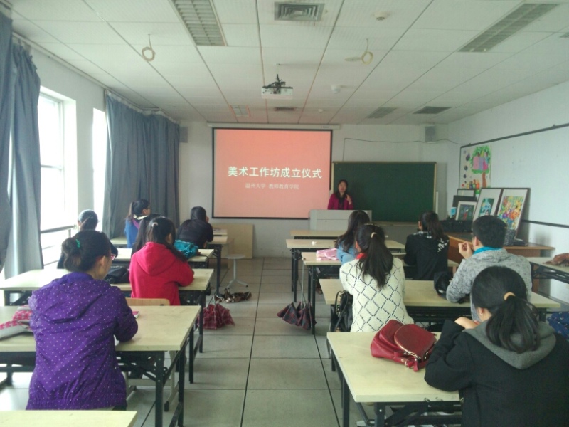 随后,陈铿、林琛琛两位指导老师分别向在座的工作坊成员做了自我介绍,并对工作坊成立的背景、目的、意义及本学期的重要活动安排也做了详尽的讲解。仪式上确定了11学前本科的金颖芳同学为“美术工作坊”的学生负责人。