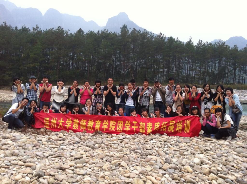 党总支书记蔡联群、党总支副书记嵇小怡、团委书记陈秀雅老师、辅导员吴冬冬老师的带领下,分两批进行了楠溪江户外团干素拓培训。