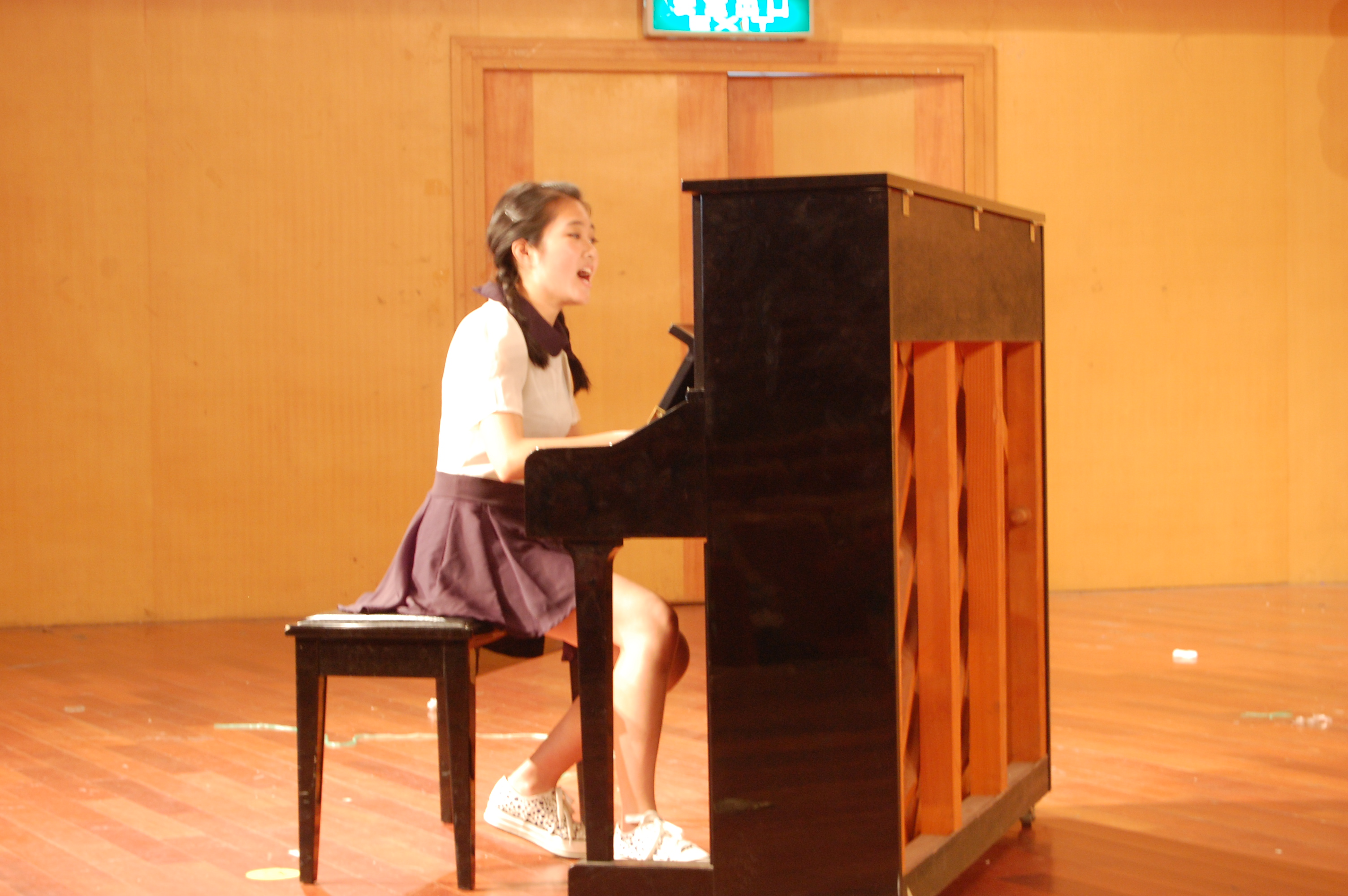 接下来是弹唱部分。要是说合唱部分激动人心,那么弹唱部分真正就是个人的才艺展示了。灵活的双手,遨游在黑白键上,收放自如;婉转的歌声从喉咙中倾泻而出 ,悦耳动听。我们都不由自主地静静聆听,感受琴音带来的美妙。尤其是11大专2班的郑科科的琴声和歌声,让大家沉醉其中。弹唱比赛很快就结束了,当主持人在台上宣布比赛落幕的时候,我们还沉浸在之前的享受中没有出来。