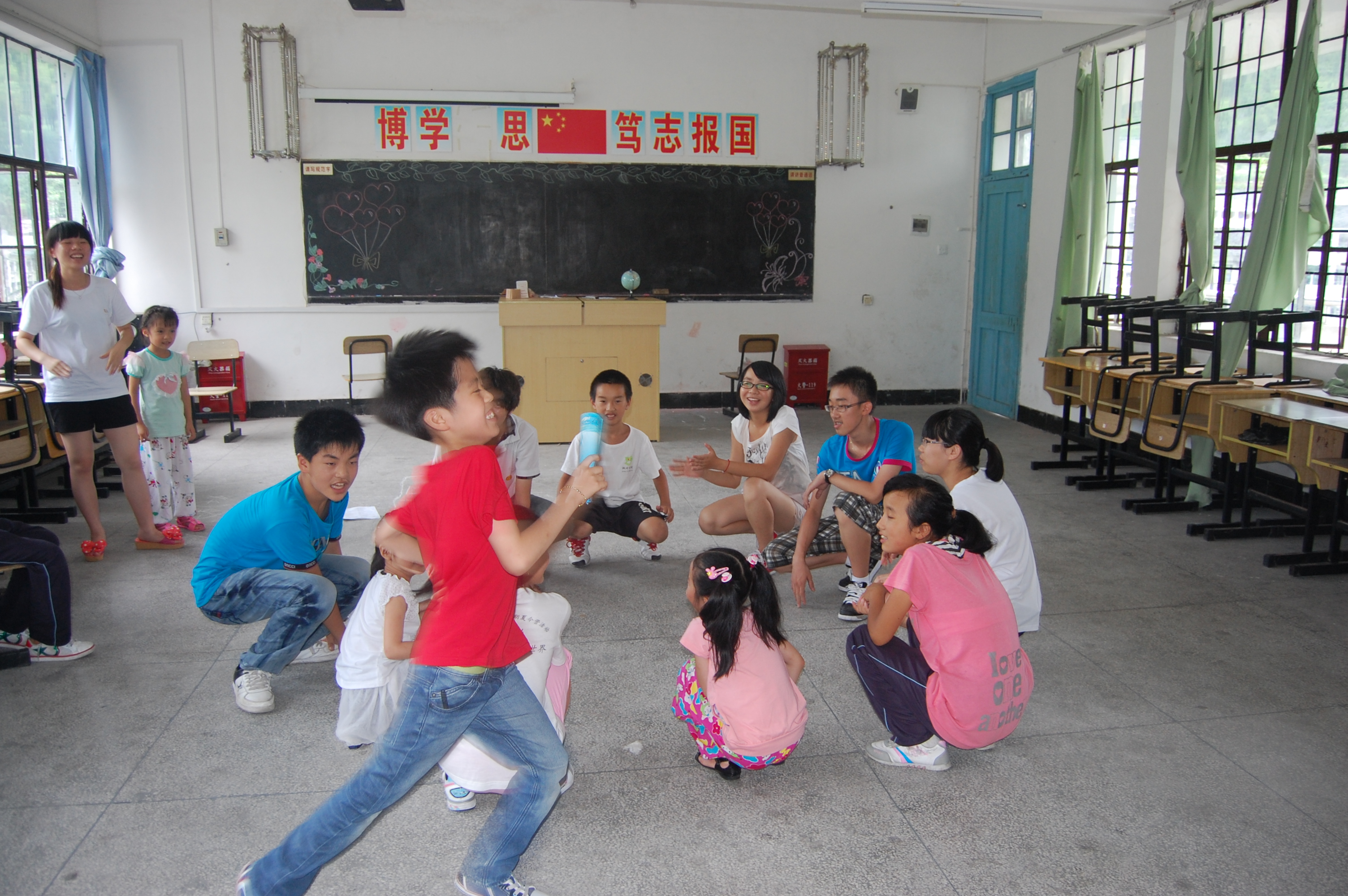 在上午低年级的团体辅导课上,老师为学生们准备了将近四个游戏,分别为速算题、记忆力大比拼、跳绳、动物数量等,把学生分为四个组,使各组之间建立竞争关系,最后选出获胜的队伍给与奖励。课堂气氛十分活跃,学生们生龙活虎。本堂课加强了孩子们的集体意识,并使学生们在游戏的同时对只是有了更深刻的掌握。中午时分,财神捕鱼