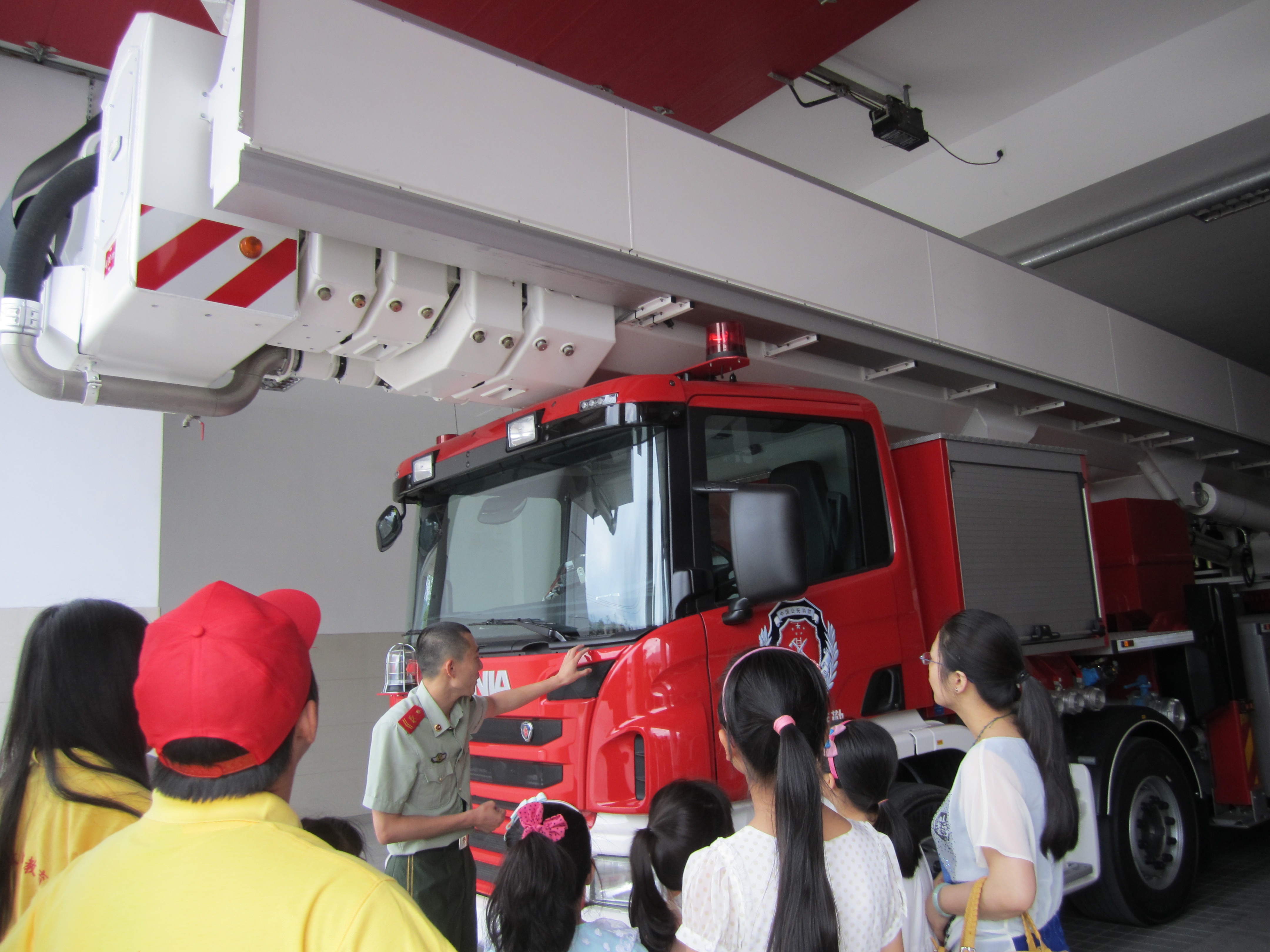 24日上午,四名知心姐姐党支部成员带领小学生来到了南白象消防支队,小朋友们一看到消防指挥训练中心就兴奋不已,迫不及待的下了车。消防支队的一位班长热情地接待我们。在这位消防员班长的带领下,我们参观了执行各种不同复杂任务的消防车,小朋友们时不时的还提出自己的疑问,表现出来浓厚的兴趣。在班长的讲解下,五位小学生还兴趣盎然地参观了消防车,对消防车内部结构有了一定的了解。当班长在介绍各种用于火场救险的工具时,通过了解工具的操作,小朋友们对消防特警的训练有素和精湛技能有了更加直观的感受。班长说:“我们接到报警,从三楼下来,到穿好执勤衣服并上车出发,完成一系列动作和流程,只需要一分钟!”小朋友们听了班长的叙述,发出了赞叹声,表示深深敬佩!