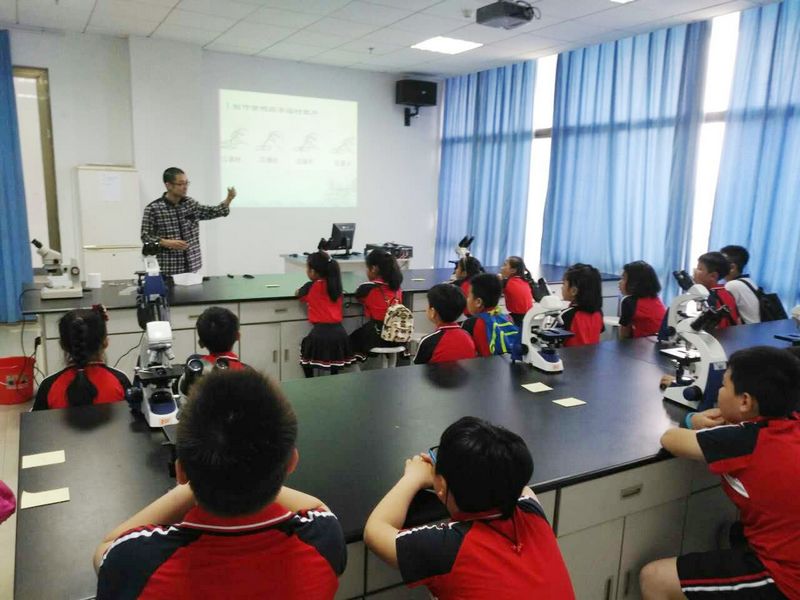 实验室里,在认真听取各实验室负责老师讲解的同时,孩子们不时提出疑问,或驻足观看,或互动交流。在自然科学室里,他们忙着做装片,观察显微镜下的神奇世界;机器人实验室里,他们体验了智能机器人夹取、移动、投篮等运作全过程。短暂的两个小时,孩子们不仅亲密接触了仪器设备,而且收获了体验的快乐,学习的乐趣,锻炼了实践操作能力,丰富了课外生活。