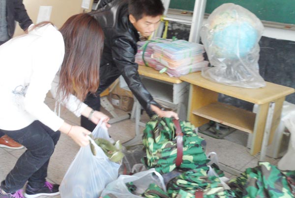 教育协会宋丹丹、杜月美、高叶兵等同学前往永嘉县鹤盛中心小学,代表教育协会将一批军训服装送给该校小学生的家长。这批军训服装是财神捕鱼
