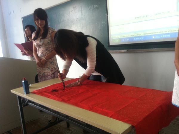 本次联评活动分为三个环节,依次是:班级展示、众位评委提问、班级才艺展示。各班以ppt或者电子书的形式,对自己班级的学风、班团建设、素拓活动等方面进行了全面细致的介绍,让大家都对各班的特色有了一个比较深入的了解。评委们针对展示的即兴提问,也充分展示了介绍者迅疾的应变能力。而最后的才艺展示环节,各个班级“各显神通”,声情并茂的朗诵、激励人心的合唱、温柔细腻的手语、墨香四溢的书法,将现场的气氛一次又一次地推上高潮。09小教科学和09应心更是结合自身专业,分别以科学魔术和职业生涯幻想作为自己的班级才艺,让现场评委和观众们眼前一亮。最
