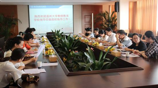 进行学前教育五年一贯制新生入学调研工作,参会的有温职专校长朱虹和各个科室负责人,以及幼师学部各专业教师。