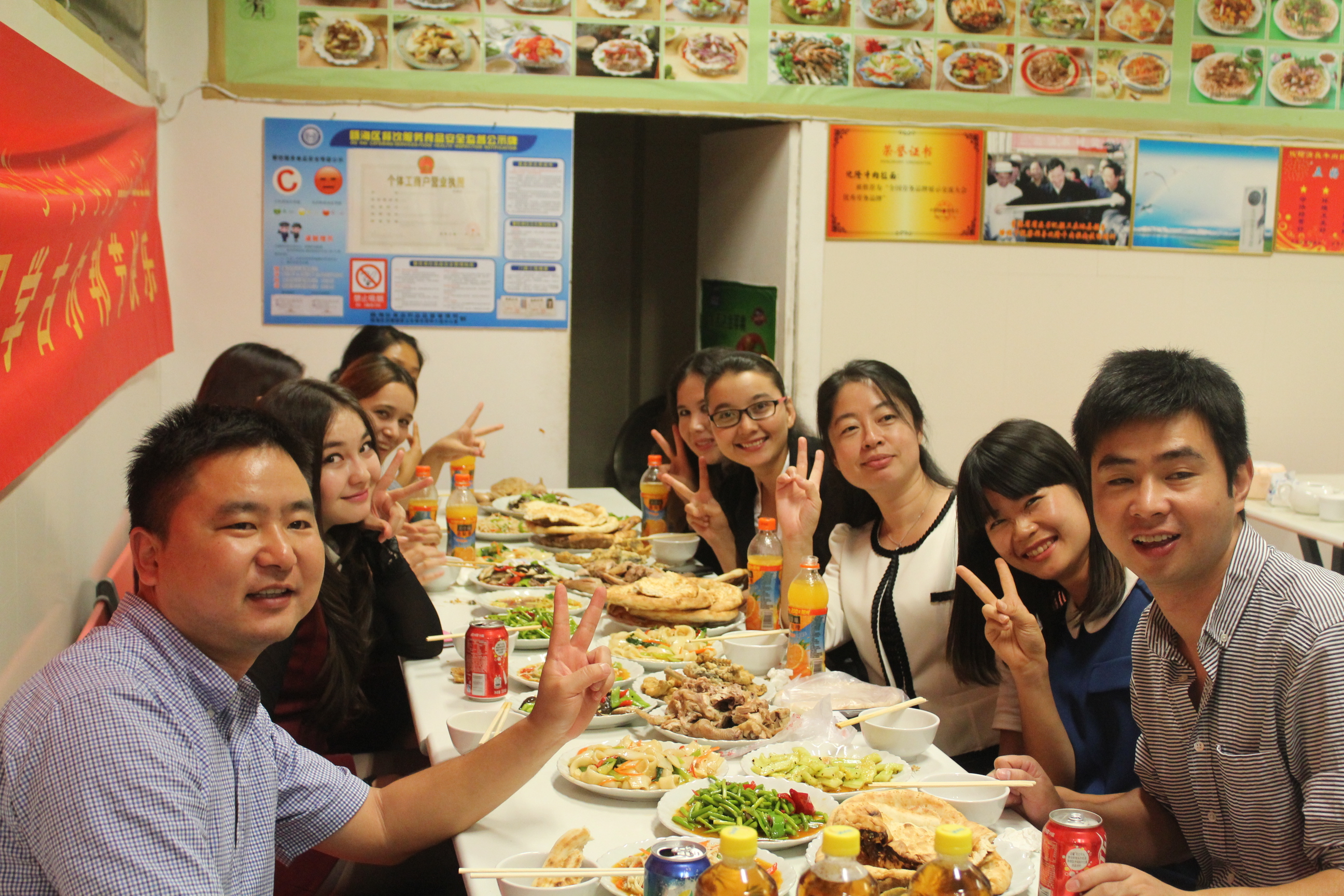 的新疆籍少数民族同学共庆古尔邦节。大家欢聚一堂,共品清真菜,同贺佳节。晚会上,嵇书记幽默风趣地给我们来了开堂乐,章书记不甘落后,也畅谈了他的新疆游历经历。欢乐氤氲在空气中,喜悦洋溢在张张笑脸中,其乐融融。快乐的脚步马不停蹄,舞蹈、唱歌、合照蜂拥而至,多才多艺的新疆同学让聚餐丰富多彩。餐桌上,嵇书记温切地关怀新老同学,阳光般的笑容温暖灿烂。章书记则传授学习经验,畅谈人生阅历,还给我们讲了溯初学区兰州拉面店的由来。此间,老师学生的头衔早已烟消云散,剩下的只是朋友间真挚的交心。每分轻松的愉悦定格于张张相片,记忆成了永存的珍贵。一举手,一投足,尽是淋漓尽致的快乐与满足。