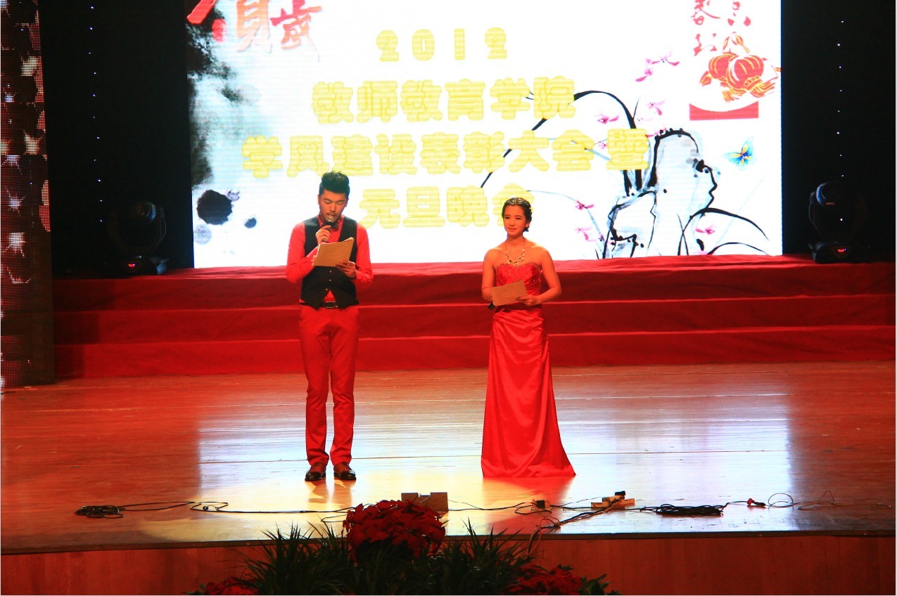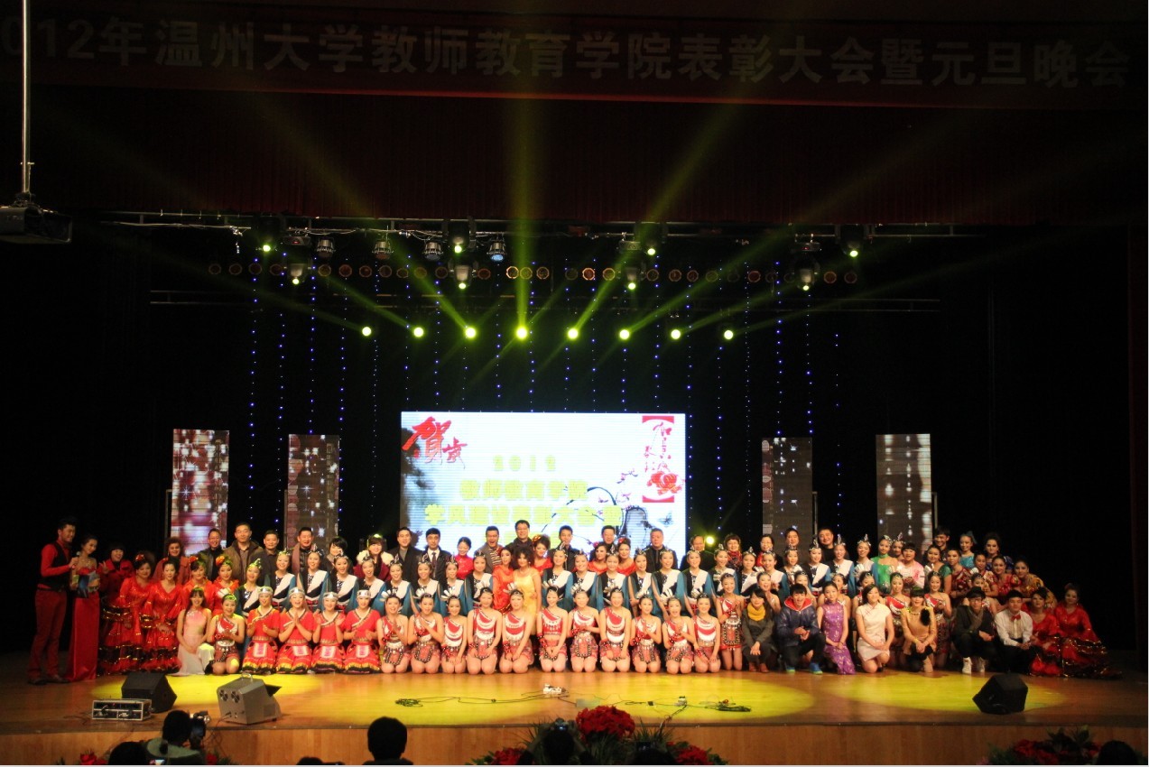 2012年学风建设表彰大会暨元旦晚会在大学生演艺中心隆重举行。原校党委书记陈艾华、校团委副书记叶正飞、溯初学区副主任章志图及财神捕鱼