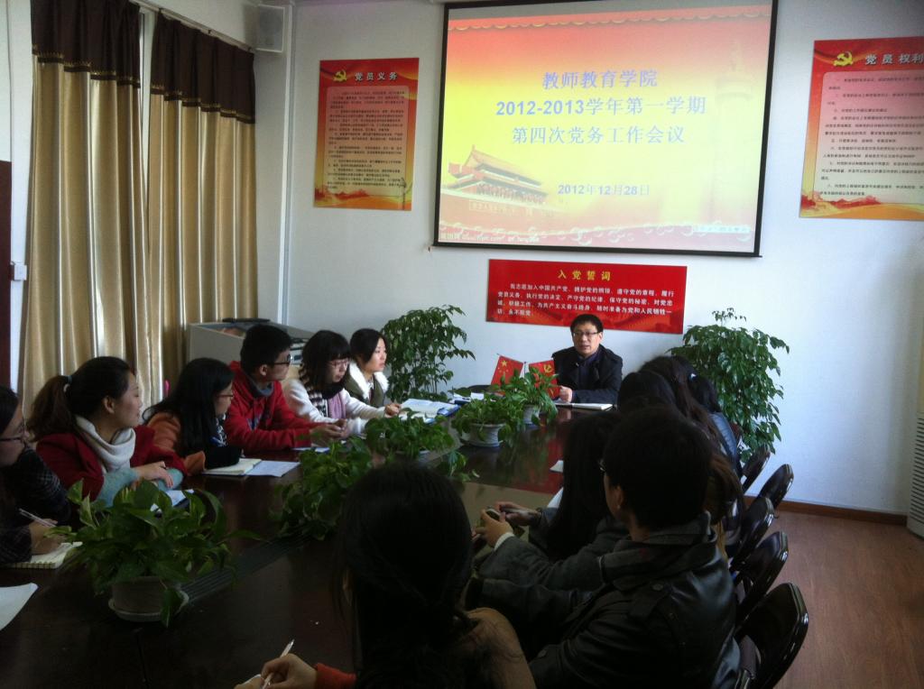 此外,蔡书记还就2012年民主评议工作、期末考风考纪工作与大家进行了讨论,各支部支委成员进行了近期工作交流。本次党务工作会议,明确了近期党务工作的方向,为各项活动顺利开展奠定了基础。