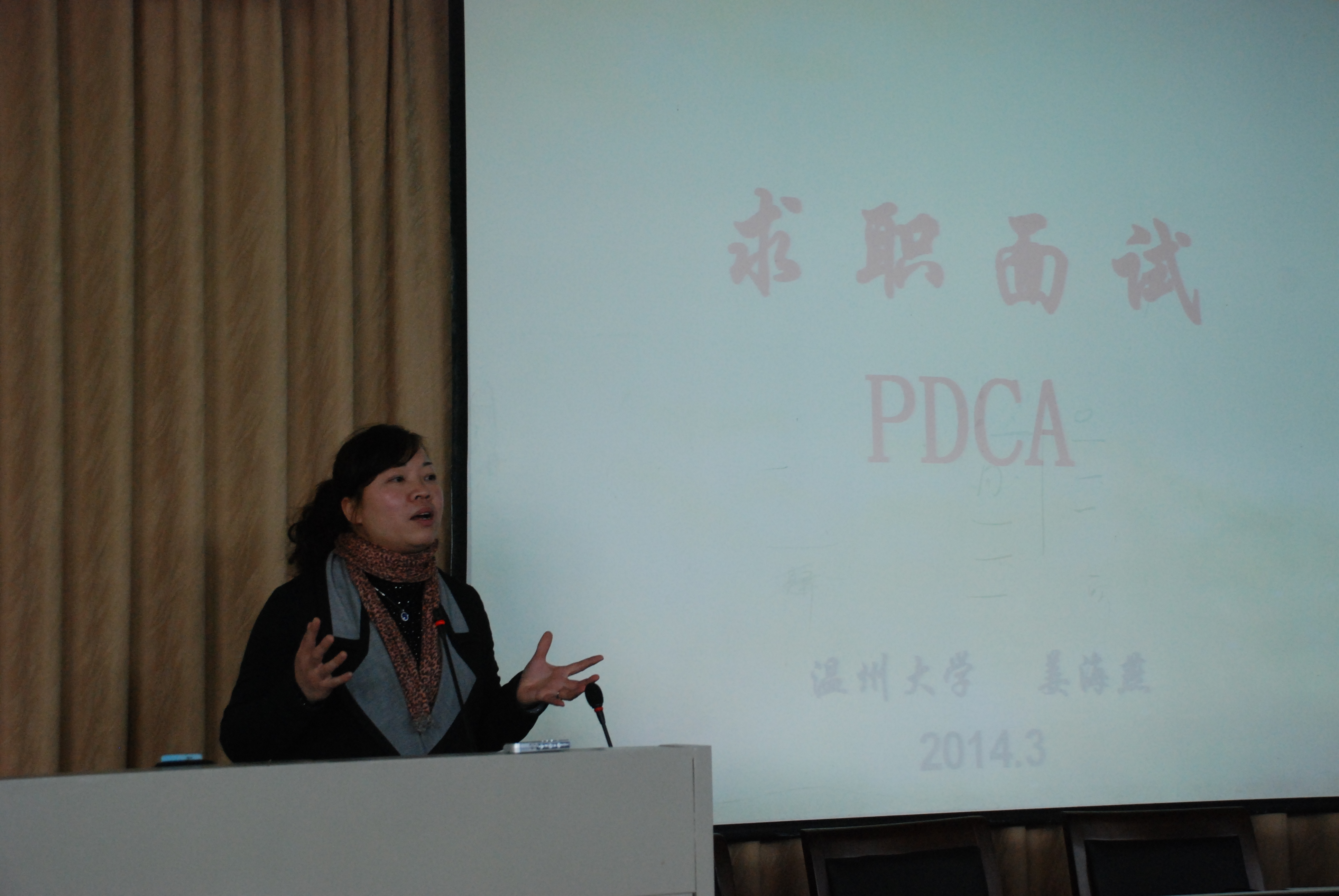 此次培训分两部分,第一部分:姜海燕处长为同学们进行了题为《求职面试PDCA》的讲座,她从面试前的准备、面试中的表现、面试后的反思、及再次出发四个部分为同学们讲述了面试中每一个微小的细节,同学们听得聚精会神并努力将姜处讲的每一点记录到位。