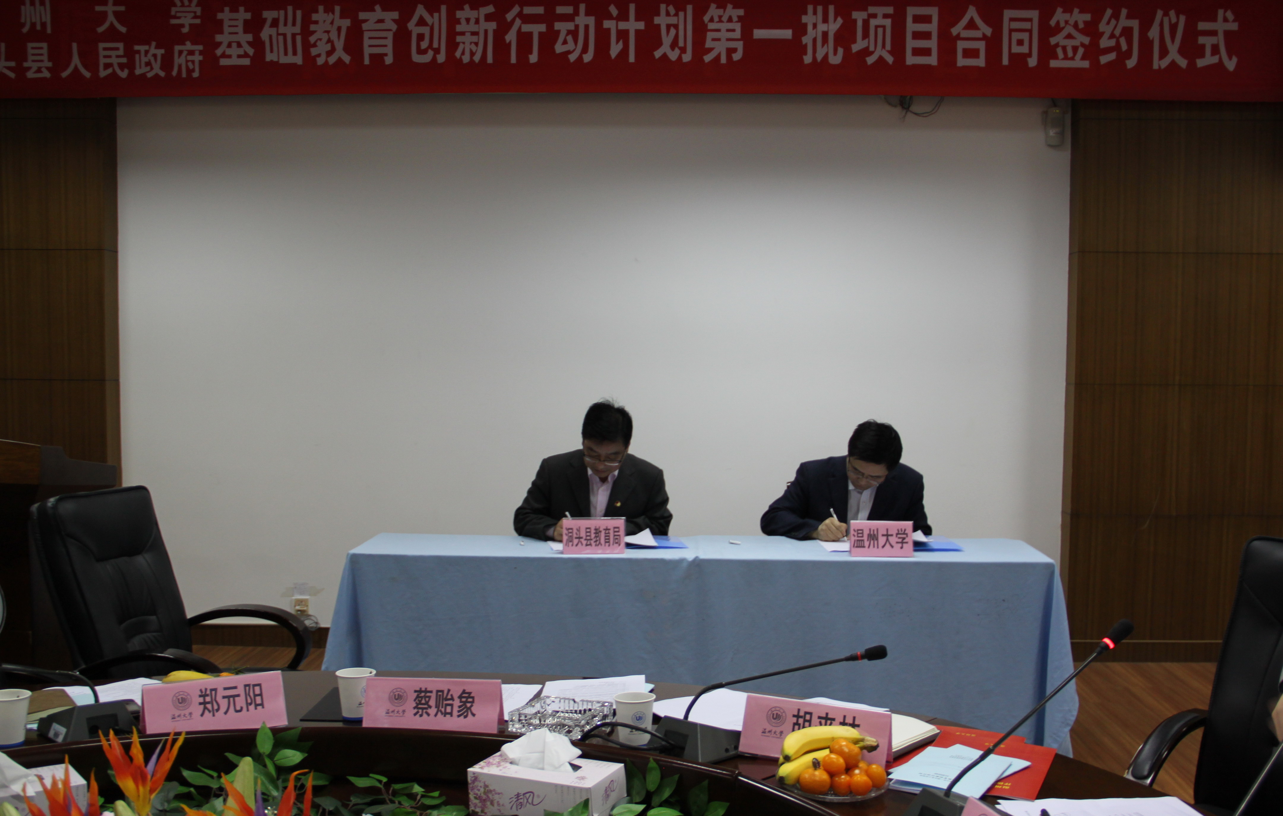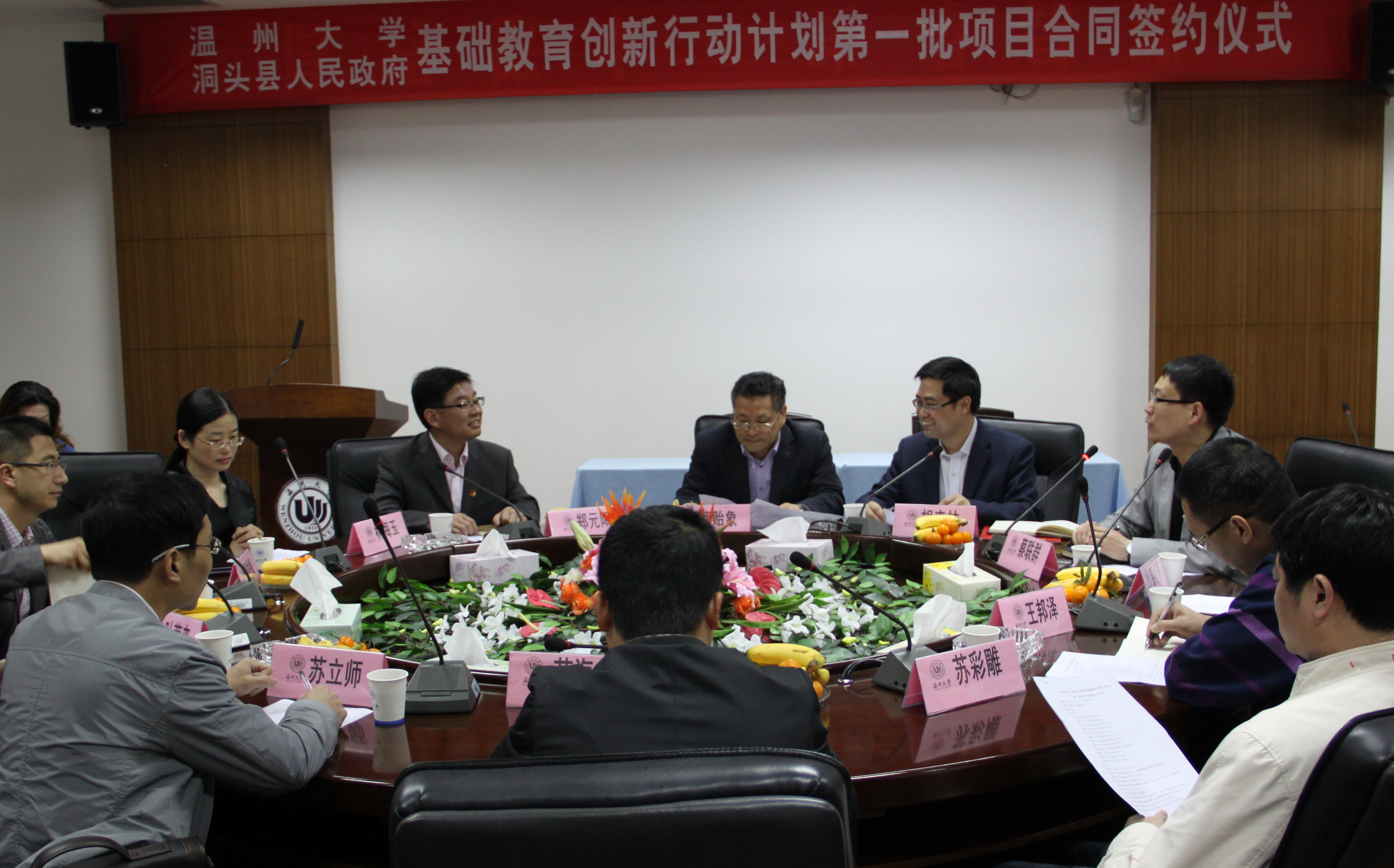 ·洞头县人民政府基础教育创新行动计划第一批项目合同书上签了字。本次签订的合同中包括16个具体项目,总经费达75.5万元,项目期限一年半。合作内容涉及特色财神捕鱼