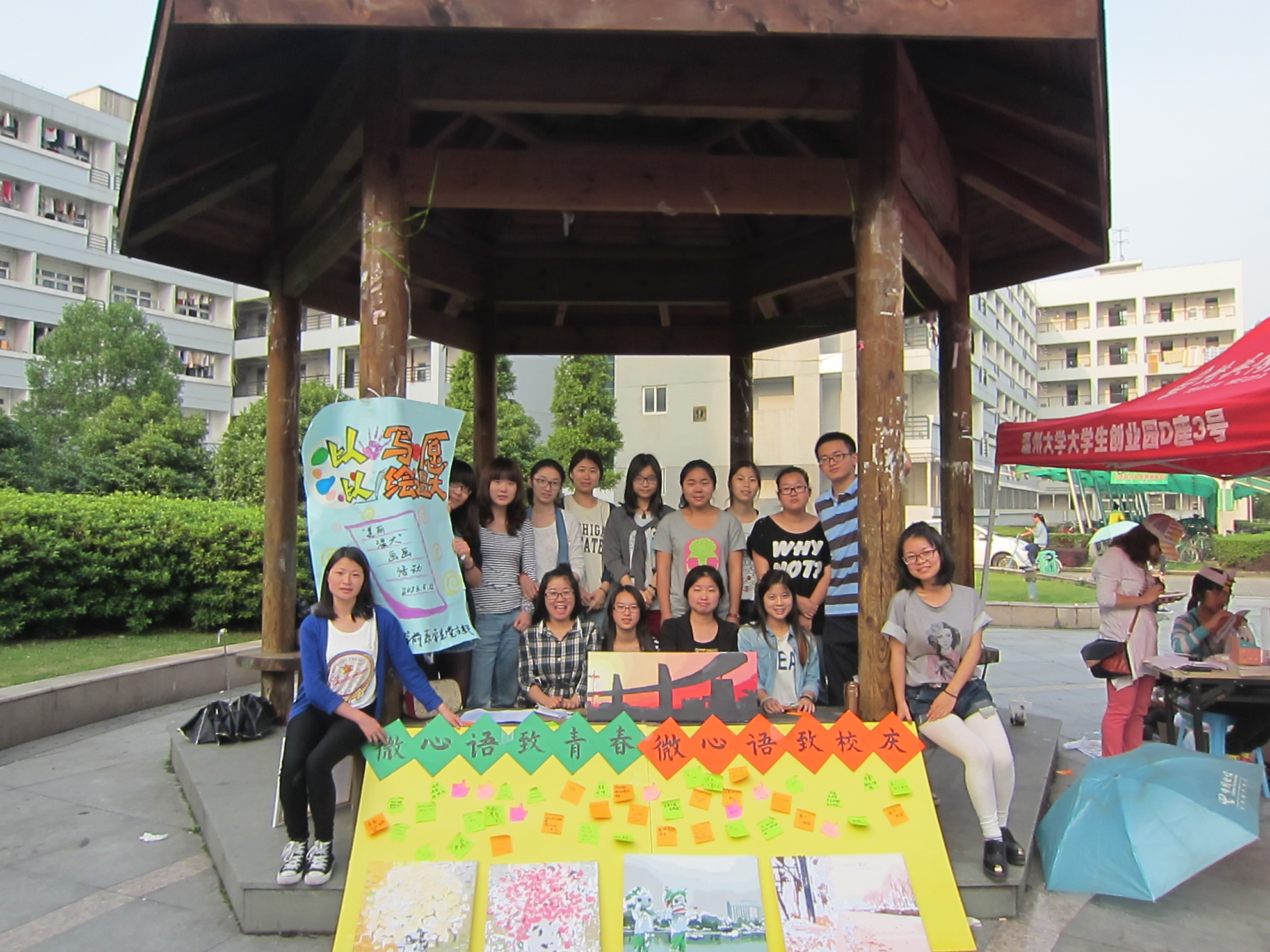 八十周年校庆,学前党支部的所有成员怀着一颗真挚的心,在溯初学区的凉亭开展了“以手绘温大,以笔写心愿”的党日活动。
