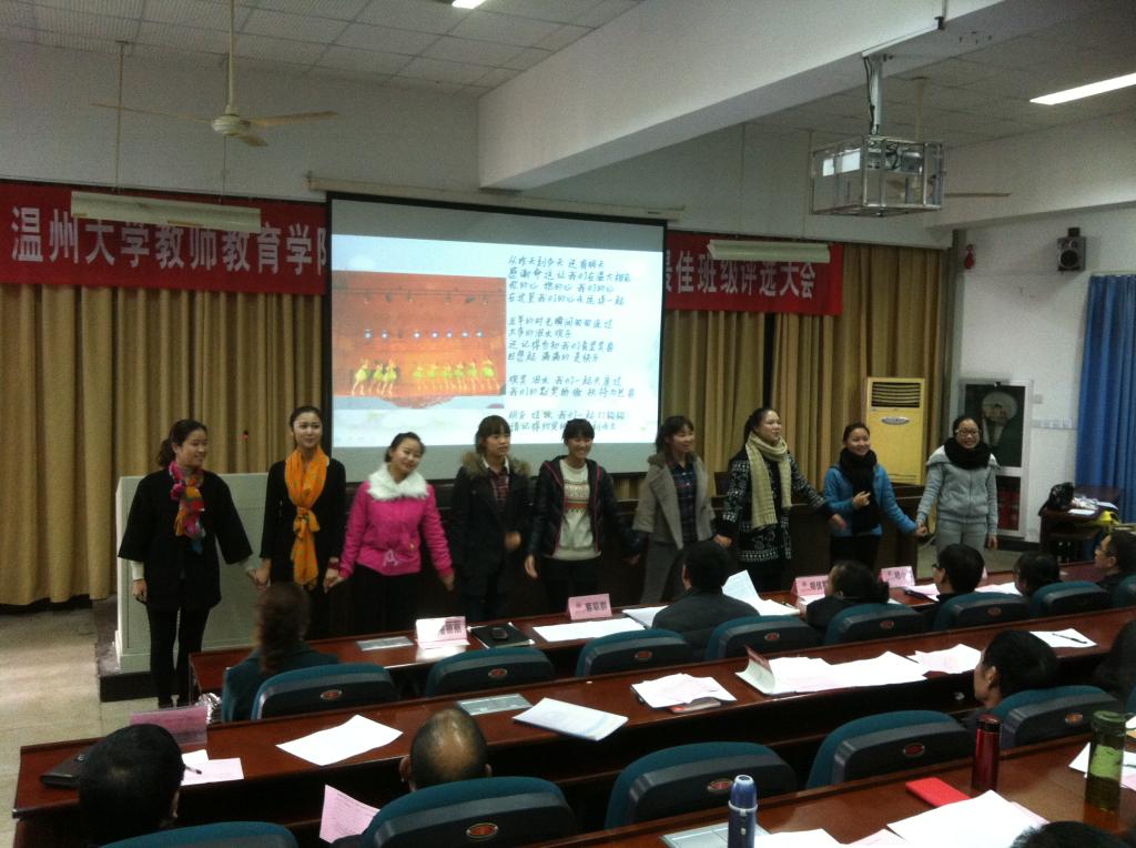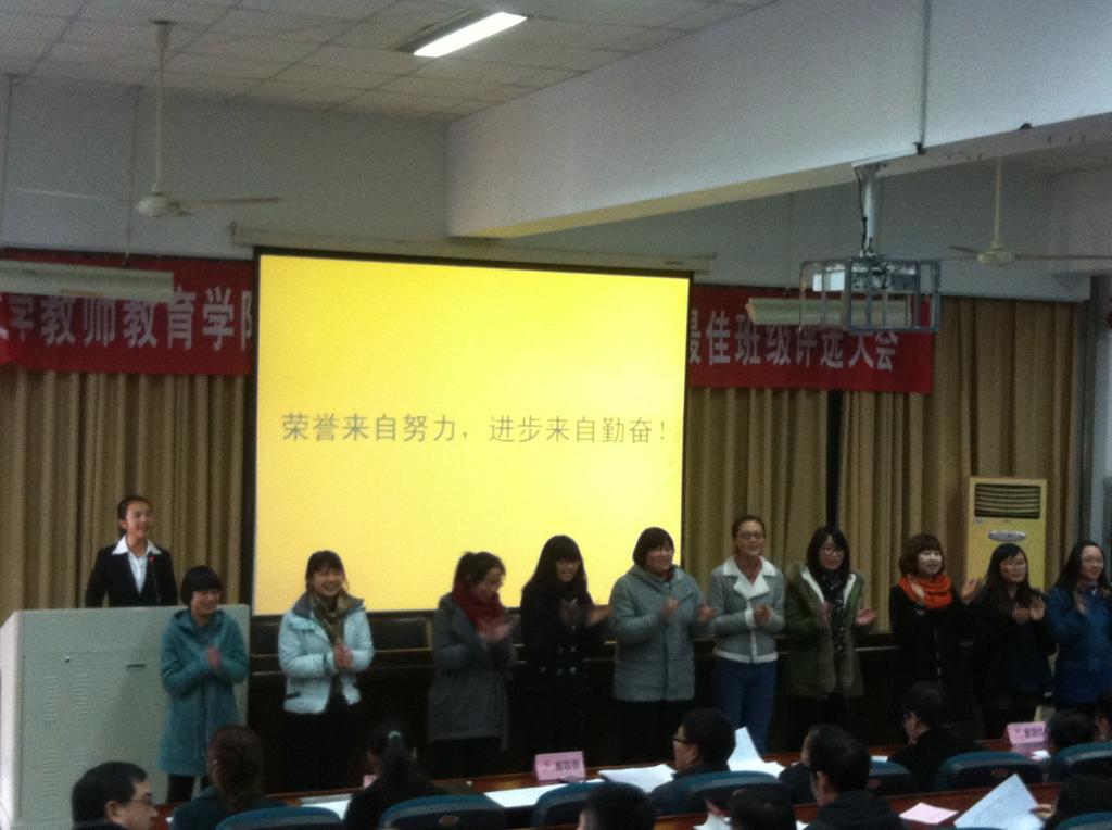 第一轮是优秀班级的评选,在初选中脱颖而出的8个班级将进行3个“特邦”优秀班级的争夺。这8个优秀班级分别是:11学前大专2班,10小教数学,11小教中文,10学前本,11小教科学,10应心,09小教中文和10小教科学。她们从班委建设、党团建设、团日活动、志愿服务、实践活动、学科竞赛等多个角度展示了班级的优良学风和凝聚力。