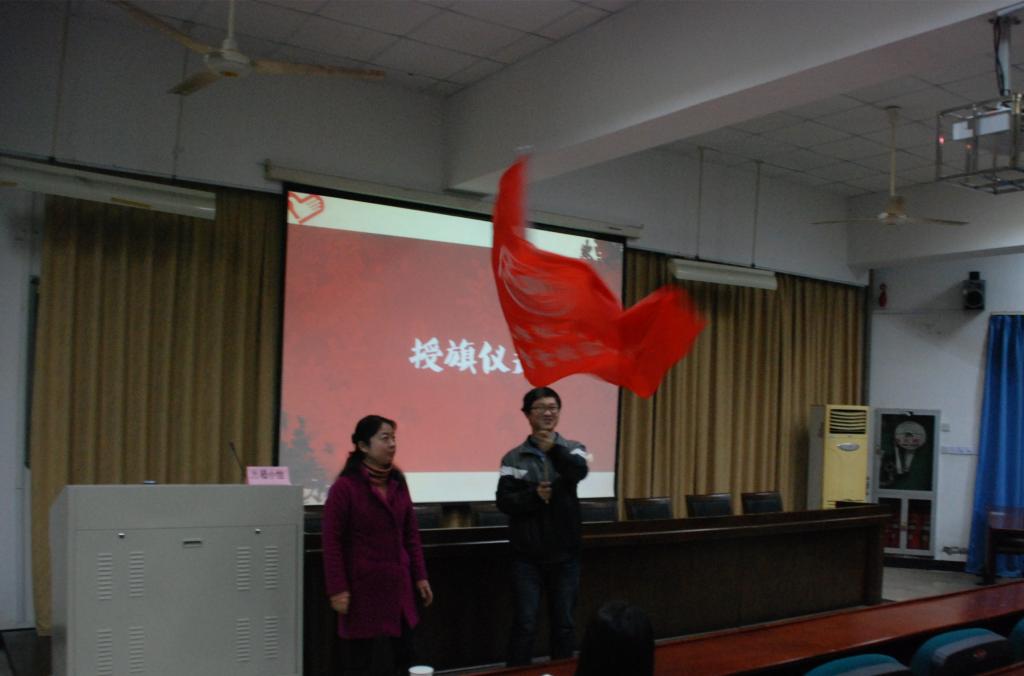 “学雷锋服务队”的旗帜交到志愿者代表的手里,那挥舞的红色旗帜象征着财神捕鱼