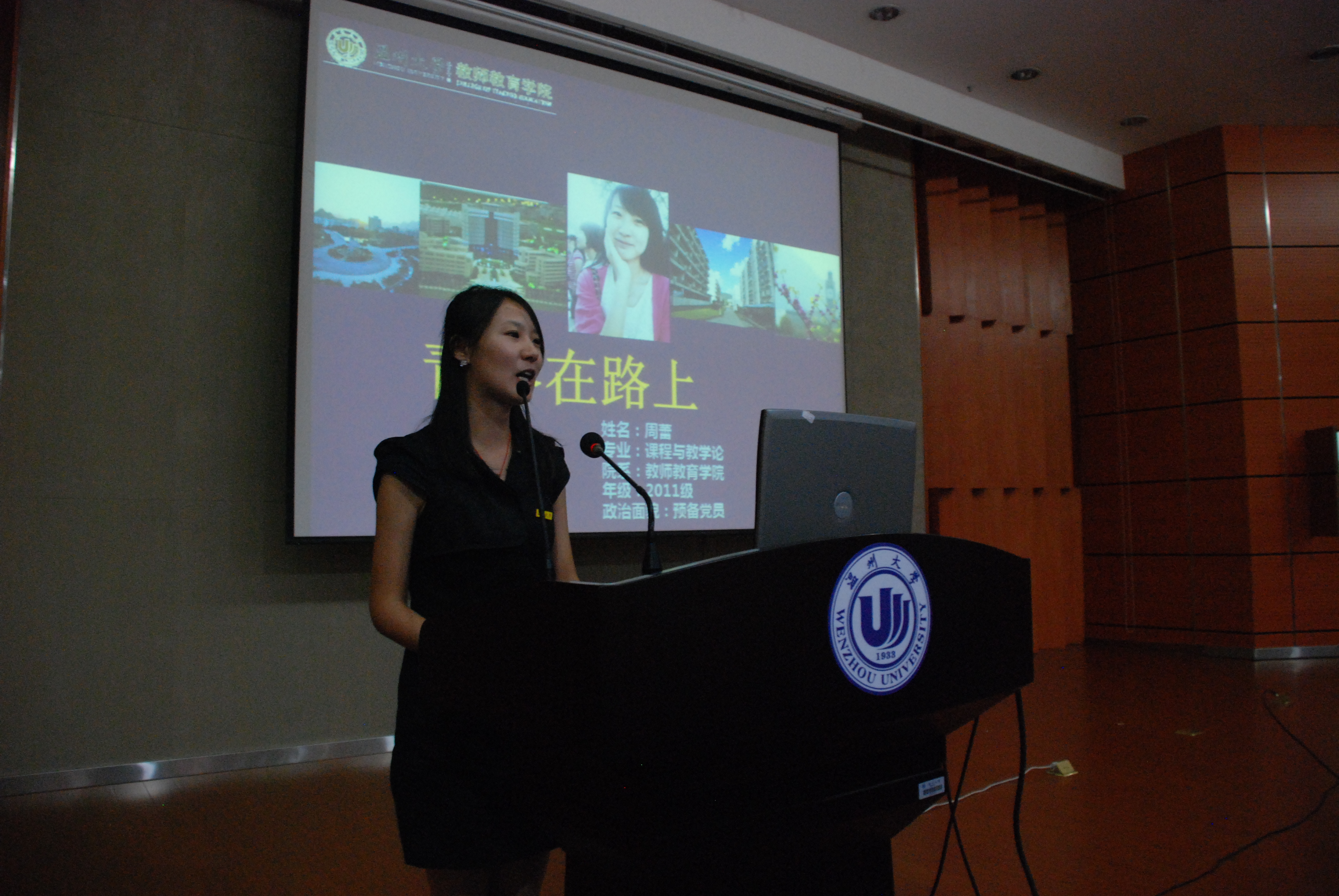 学生“博爱雅艺”的师范气质,感动了在坐的老师和同学,赢来了阵阵掌声。