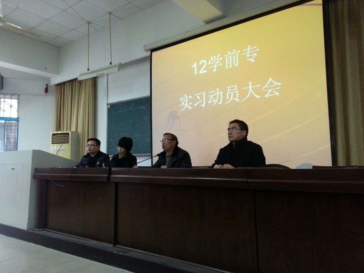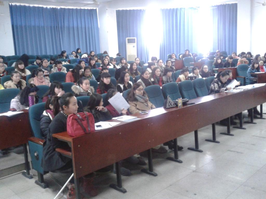 副院长彭小明教授、教育科副科长章圆圆老师、学前系系主任曾国老师、教学科胡孙贵老师,本次实习带队的指导教师陈旭微、胡乐敏、章春和、杨丽霞、张小伟等几位老师以及全体12学前专92名学生和2名研究生。动员大会由胡孙贵老师主持。