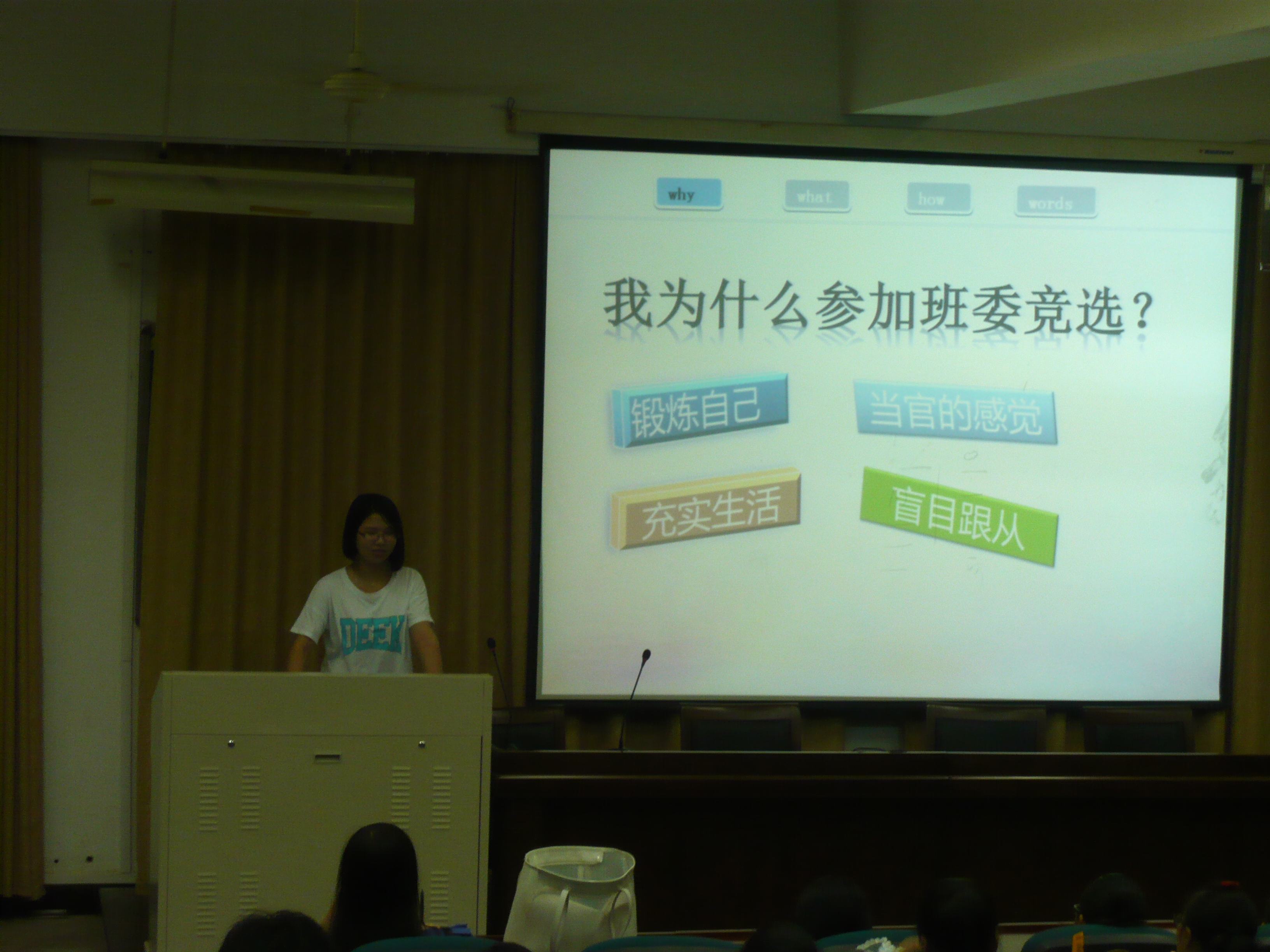 黄央央学姐根据自己多年担任班级团支书的经历,向13级新生们传授了许多自己在班委工作方面的心得与经验。主要围绕班级学风建设、班级活动、班级和个人荣誉等多个方面展开,为13级各班的班委们提供了参考范例。同时,她所在的班级也多次在财神捕鱼