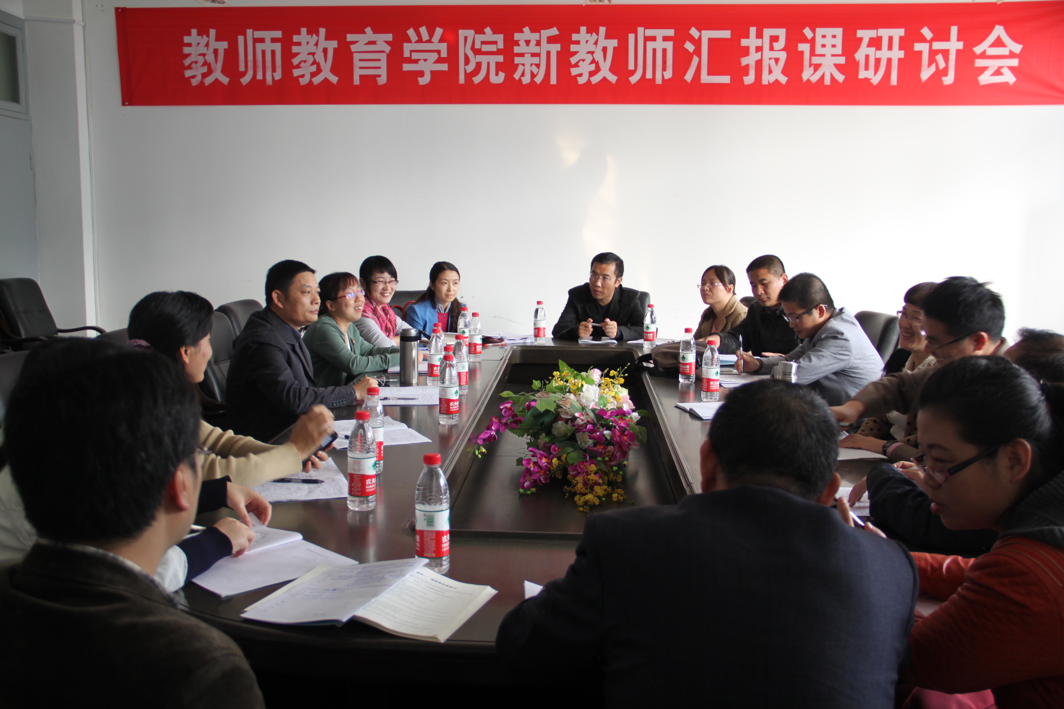 新教师的汇报课的观摩与研讨活动。各新教师各项综合素质普遍不错,备课认真,思路清晰,但由于经验不足,在教学过程中也存在一定可以改进的地方。在课后的教学交流研讨会上,各位听课老师的给新教师提出一些中肯的建议,新教师在教学中要就结合专业培养方案,了解学生特点,实际情况,做好学情分析;在教学过程中要结合实践,应用;强调了教学内容的重要性;在强调教学内容的前提下也要运用恰当有效的教学方法。