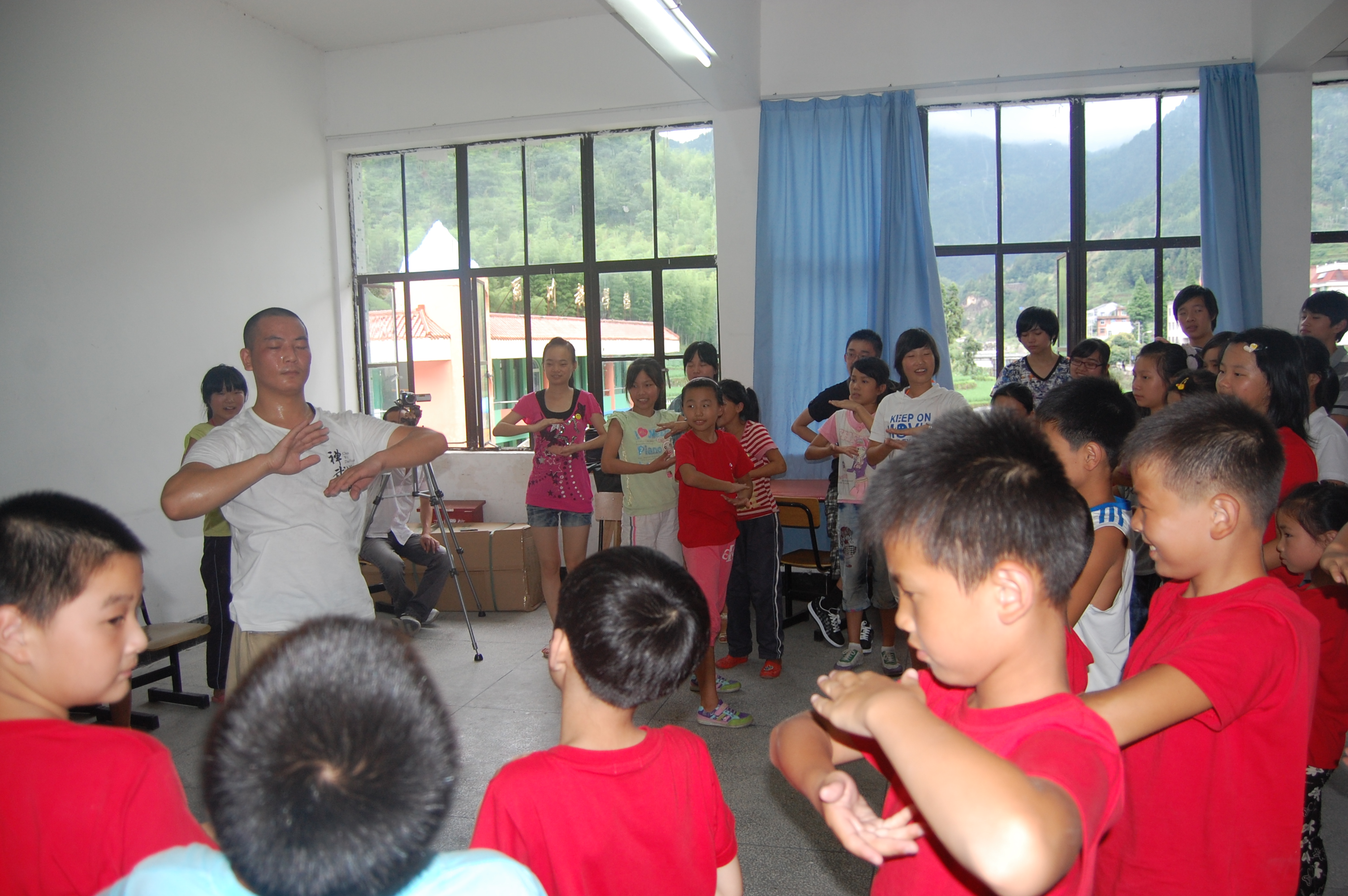 的第三天。为让侨乡孩子了解中国传统文化——武术,实践队特地请来禅武道馆少林寺第34代传人释师父给孩子们进行了武术教学。