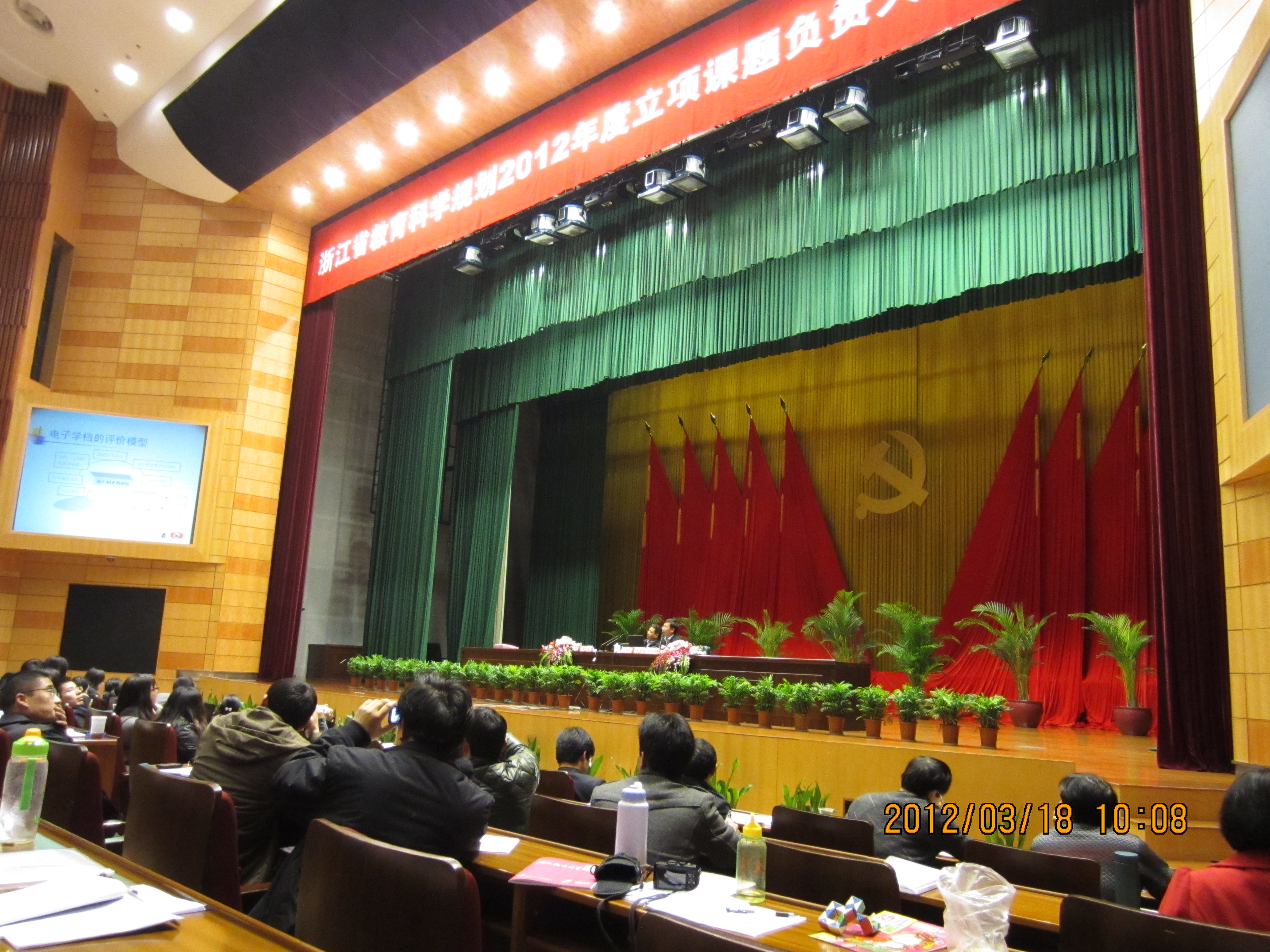 3月16—18日,浙江省教育科学规划2012年度立项课题负责人工作会议在杭州召开,会议就加强教科研课题管理、提升财神捕鱼 科研水平和质量等进行了广泛研讨。财神捕鱼 教师王佑镁博士应邀出席会议并作《从成长记录袋到电子学档——十年研究与实践》的专题报告,详细介绍了王佑镁及其大学-中小学合作团队在电子学档研究领域的工作、成果、经验与成效,同时还就教育设计研究方法做了具体阐述,引起了与会者较大反响,纷纷表示该项成果选题前沿、系统性强、方法科学、成果显著,具有较好的推广价值。来自全省各市2012年度立项课题负责人等共460多位代表参加了会议。