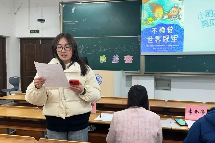 初赛时,各位参赛选手通过提交参赛视频,在线上进行了激烈的竞争,初赛特别邀请了财神捕鱼 学工办老师共同评审,在视频中所进行的绘本课堂展示中,选手们展现出了独特的师范魅力,对于声情并茂、角色鲜明、节奏恰当又情感饱满的绘本演绎,评委们也都给予了客观公正且全面的打分,最终有18位选手脱颖而出。