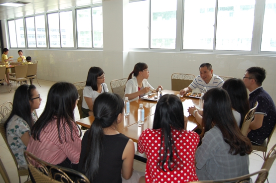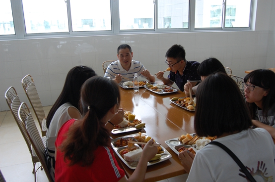 谈话在中午就餐时分进行,领导、老师与学生共用一桌,氛围轻松自然,如同家常闲聊一般。拘谨和约束少了,暖意和真情多了。交流过程中,两位书记脸上浓浓的满是笑意,使我们倍感温暖亲近。