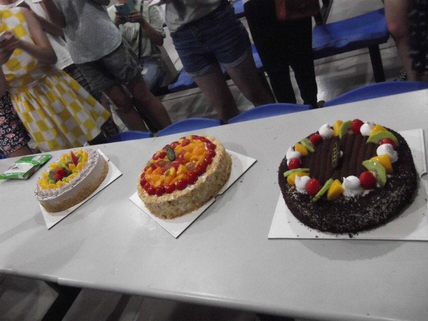 9月30日晚上,14级小教一班齐聚C1食堂二楼,为班级近两周过生日的九位同学举办了集体生日庆祝。班委和班主任联合准备了三个美味的生日蛋糕,当食堂一角的灯光被拉灭,生日蜡烛开始发出璀璨的光芒,九位同学在周围一片赞歌声中合力吹灭了蜡烛,现场气氛顿时热烈起来。美味的蛋糕被切成了很多小块,大家纷纷围上来享用,连一边跟随家长用餐的两个小朋友也被邀请分食同学们事先准备的各色点心。