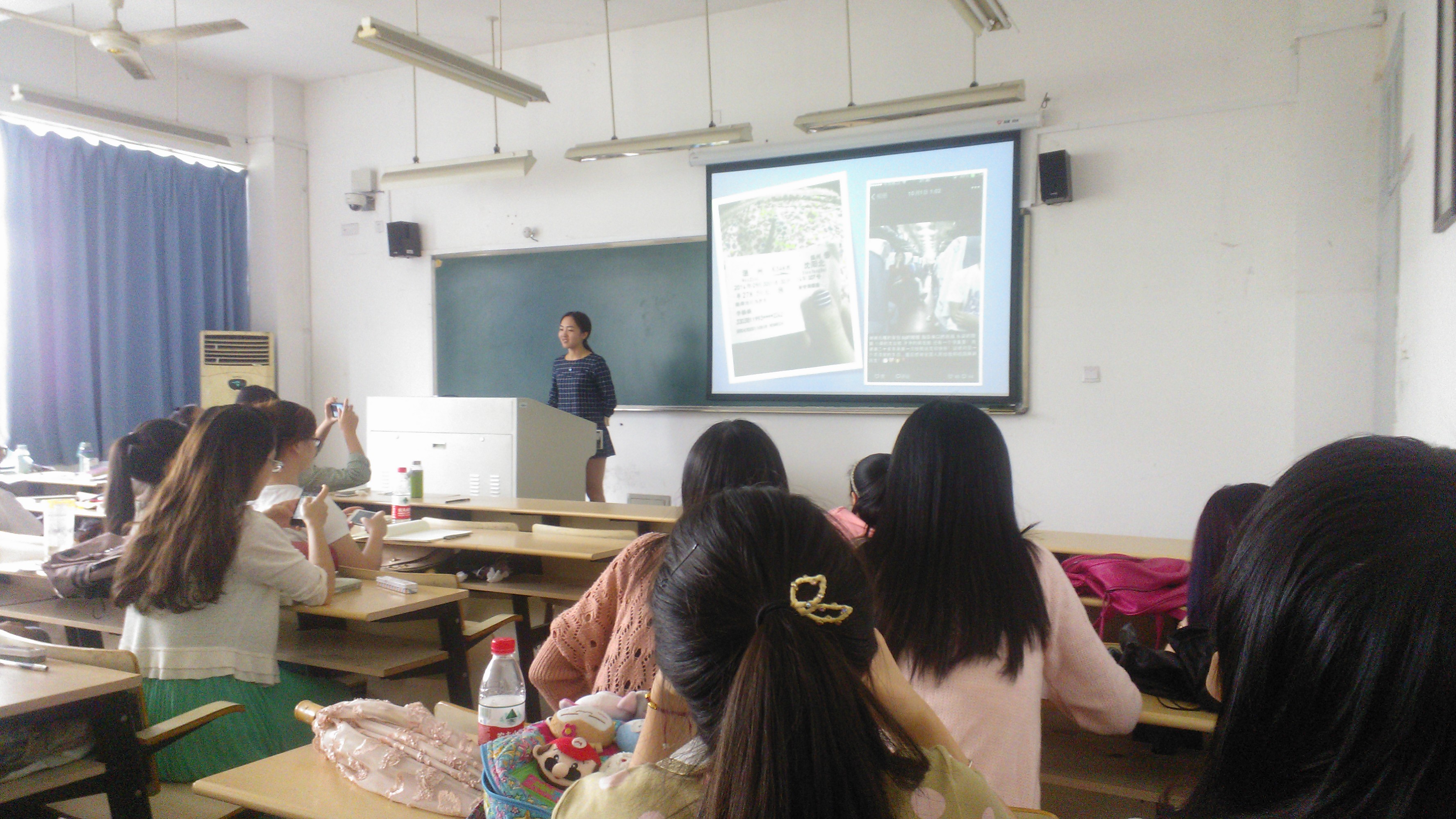 2014年10月9日下午,在北校2号楼206教室,李杨杨在本次读书交流会上分享了自己国庆假期间的旅行经历。通过图文并茂的幻灯片,她边展示边描述细节,带领同学们领略了一番不同于南方的沈阳风光。 音乐缓缓流淌,拉开了旅行的序幕。一张张照片定格幸福瞬间,承载了满满的回忆。 10月1日,出发,目的地是闻名遐迩的历史文化名城——沈阳。途中有美丽的邂逅,有浓厚的情谊。10月2日,到达沈阳北站,和朋友一起补过了一个温馨的生日。10月3日,参观世博园。但是,去的季节不对,园中只有紫色的薰衣草迎风怒放。10月5日,在沈阳天主大教堂,她为一对新婚新人拍下美美的照片留作纪念。之后,还游览了关东影视城。沈阳的的一墙一瓦、一草一木都有别于南方,透露出北方的大气磅礴,使人流连忘返。 在接下来的“美食篇”中,杨杨介绍了几种当地有名小吃。北方的口味比南方重,而不同的面粉做出的油条更是别有一分滋味。品尝美食的同时,她还学了句俗语,叫“卤水点豆腐,一物降一物”。冒着油光的白玉串城烧烤、精致的满记甜品、点缀着香菜和辣椒的美味豆腐脑、软而韧的北方油条,这些令人垂涎三尺的美食图愈发勾起了大家对北方的向往。 读万卷书,行万里路。她就这样去旅行,去追寻不同的风景,去感受浓郁的文化气息。不慌不忙,细细地阅读世界,品味人生。 (通讯员:陈聪)