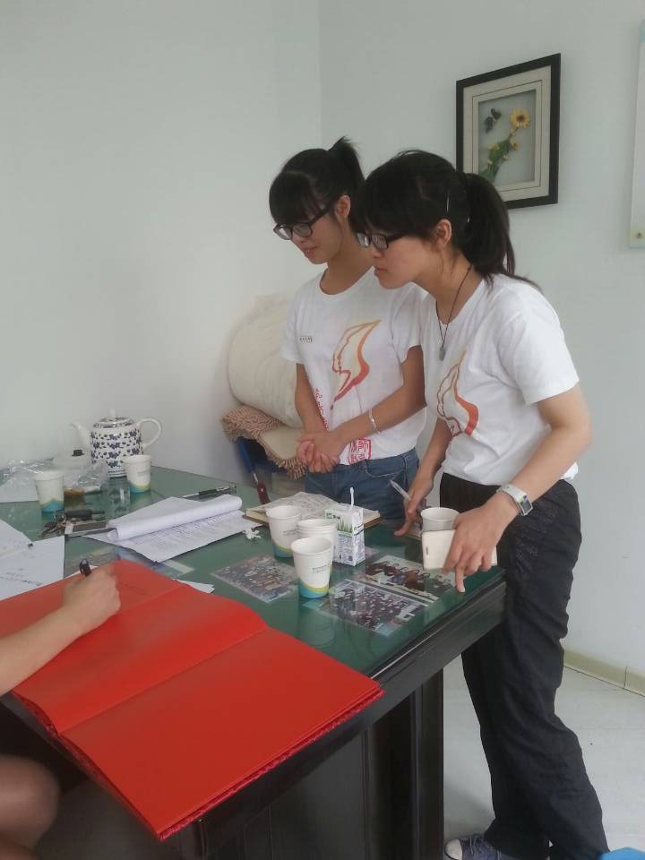 早晨七点,小组成员均已准时在C去公交站牌集合,出发目的地龙湾。由于公交线路较为蜿蜒曲折,因此队员们起了个大早,早早的等候公交车的到来。长达两个半小时的车程虽然漫长,但还算十分顺利,九点半时队员们准时到达了龙湾二幼南洋分园。一进幼儿园,温馨美丽的校园装饰立刻感染了队员们,完善健全的教学设施,温馨甜美的校园布置,让队员们感受到了龙湾二幼培养“阳光孩子”的品牌理念。在楼下等候不久后,队员们便在园长的安排下去到了她的办公室。园长非常的热情,给队员们倒水,一场长达一个多小时的采访也在轻松自然的氛围中顺利进行。园长和蔼可亲,和队员们谈到了她的大学生活,也就队员们的提问做了非常细致的回答,让队员们感到非常的欣慰和荣幸。最后,园长在队员们的赠言本上写下了寄语,给教师财神捕鱼
