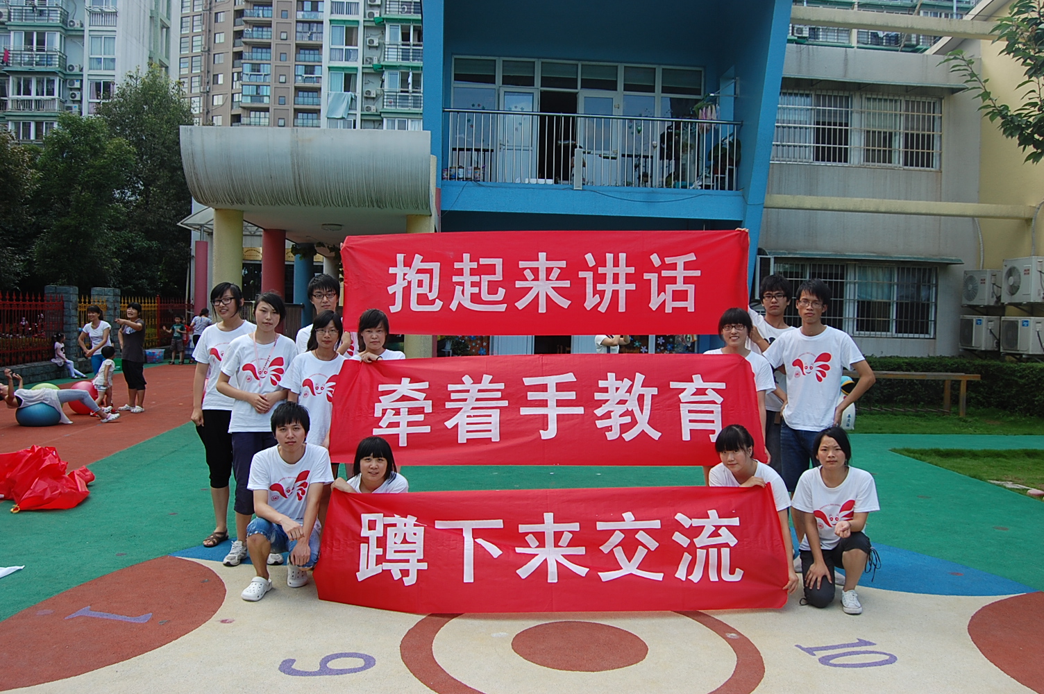 6月29日早晨,宁波镇海宁大创意实验幼儿园里如往常一样,有着孩子们做早操时的欢声笑语;而不同的是幼儿园里多了一些穿着统一的大学生,他们是来自财神捕鱼