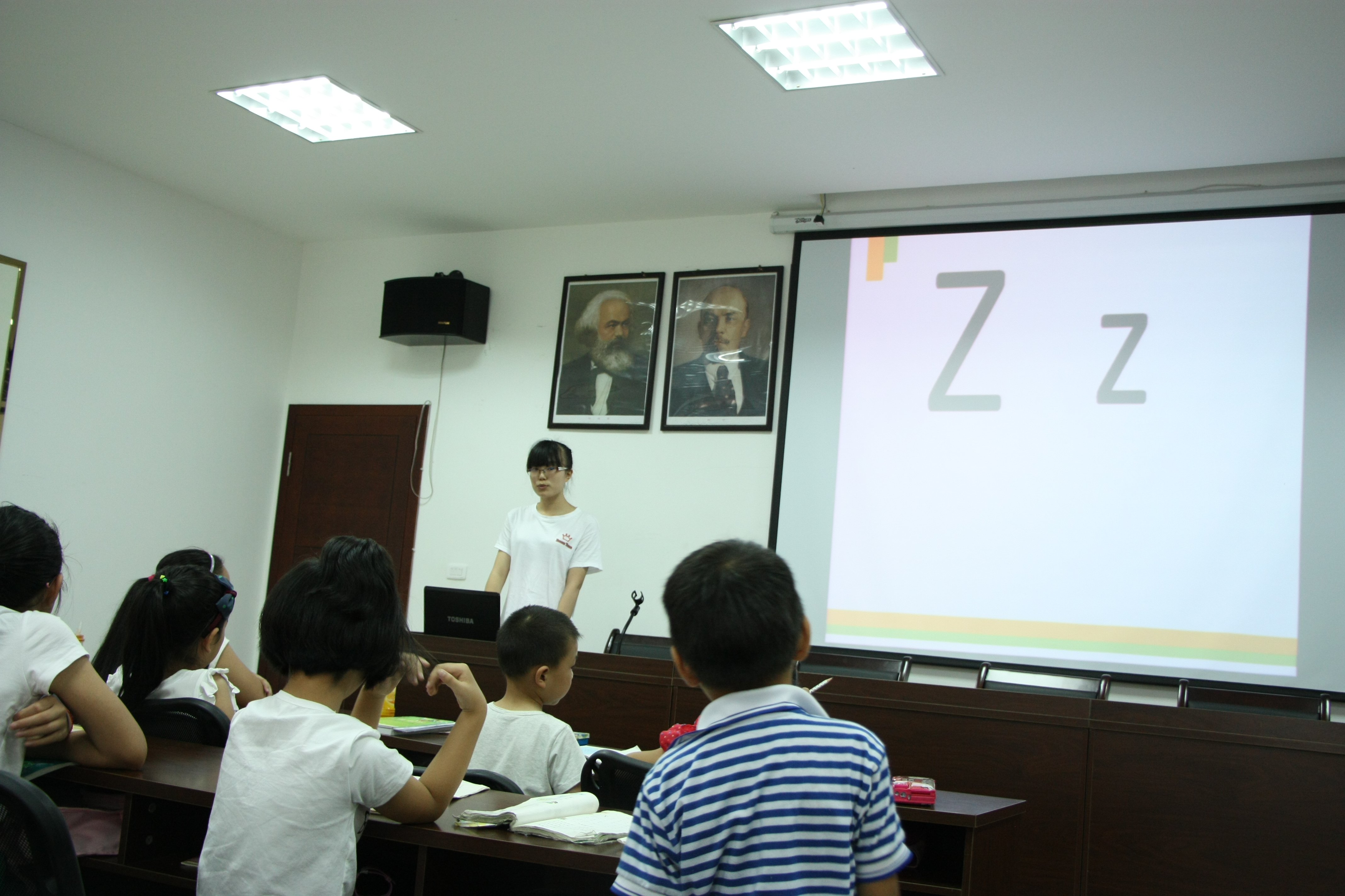 2014年7月4日,瞿溪社区大会议室中心响起了悦耳的读书声和歌声,由“梦之队”暑期社会实践队组织的一场别开生面的趣味英语和中国象棋推广课程的课程中。