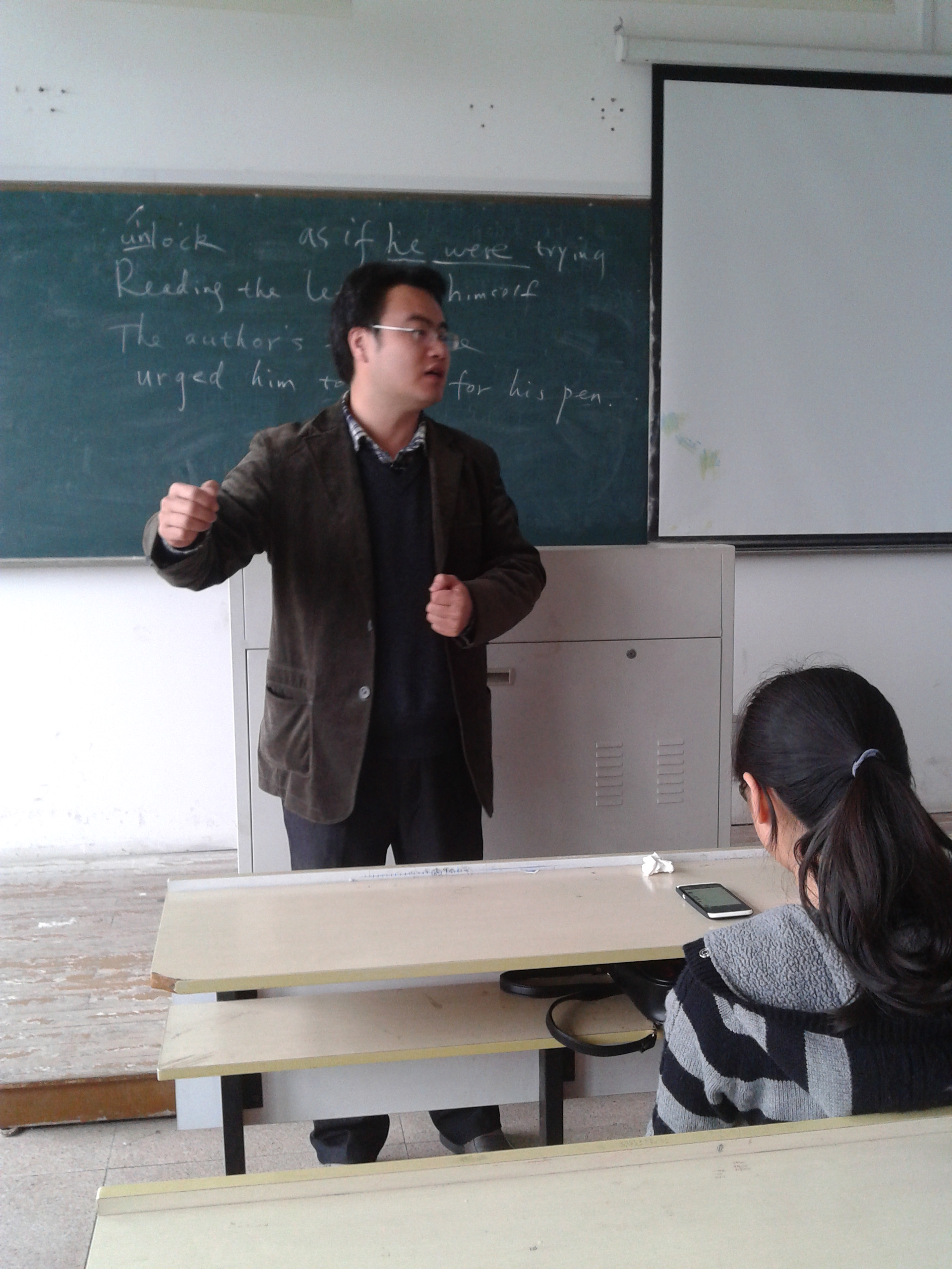 首先,杨刚老师对这次迟到的班级会议表示抱歉并对同学们又回到了12教技这个温暖的大家庭表示欢迎!随后他向我们讲解了本学期班级活动安排的规划概要,并就一些模块做了详细地解释,例如关于活动经费,选址等等。本学期部分同学还将迎来大学英语六级考试,所以杨刚老师请我们班叶颖颖同学(大学英语四级645高分)给大家讲讲她是如何学英语的。从叶颖颖同学简短的讲话中,我们不难发现英语就是一个慢慢积累的过程。最后,杨刚老师对转入我们班的新生包绮聪同学表示热烈欢迎,并赠与精美礼品一份。
